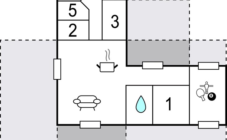 On the east side of the house is a partially covered terrace where you can enjoy your breakfast on a beautiful summer morning. From the living room you have access to a covered terrace overlooking the lake, where you can enjoy the warm summer evenings. This environment can be the backdrop for many cozy barbecues with family and friends. There is a swimming pier by the lake and plenty of fine sand, so you will feel like you are on your own little beach. There is additionally a fire pit where you can hold marshmallows and stick bread over the fire in the evenings. If you like fishing, you can keep the freshly caught fish in a cleaning area.