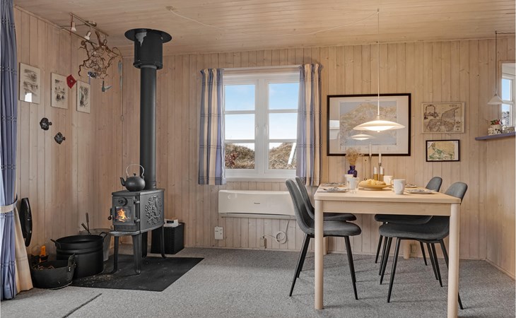 At this vacation home you have every opportunity to experience a typical Danish dune landscape. The horizon is wide, the grass blows in the wind and in the sky the clouds fly by. Ideal to get away from the stress of everyday life. The renovated interior of the house has a bright, neat flair. Comfortable furniture and a kitchen equipped with basic elements provide coziness on vacation.