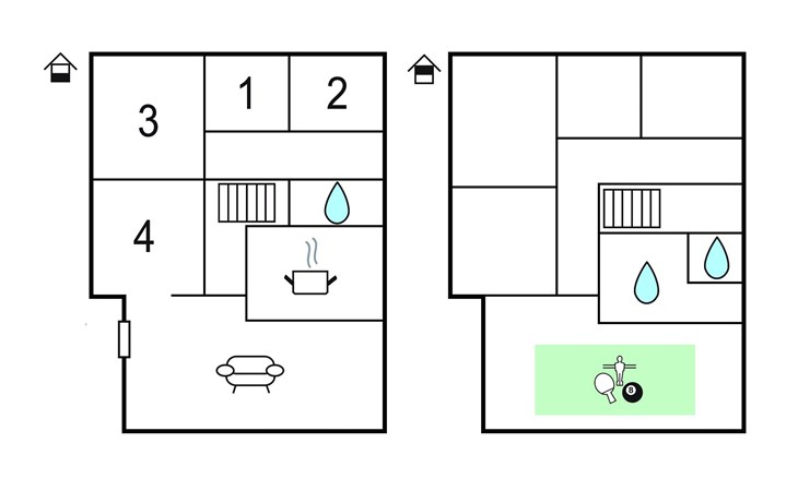 Let yourself be pampered by the cosy atmosphere inside the house. The combined living and dining area is flooded with light and stylishly furnished. Enjoy your meals here at the dining table with a view of the sea. Relax on the corner sofa or step out directly into the garden. An activity room with table football, pool table and table tennis is available to keep you entertained. You can relax completely in the in-house whirlpool.