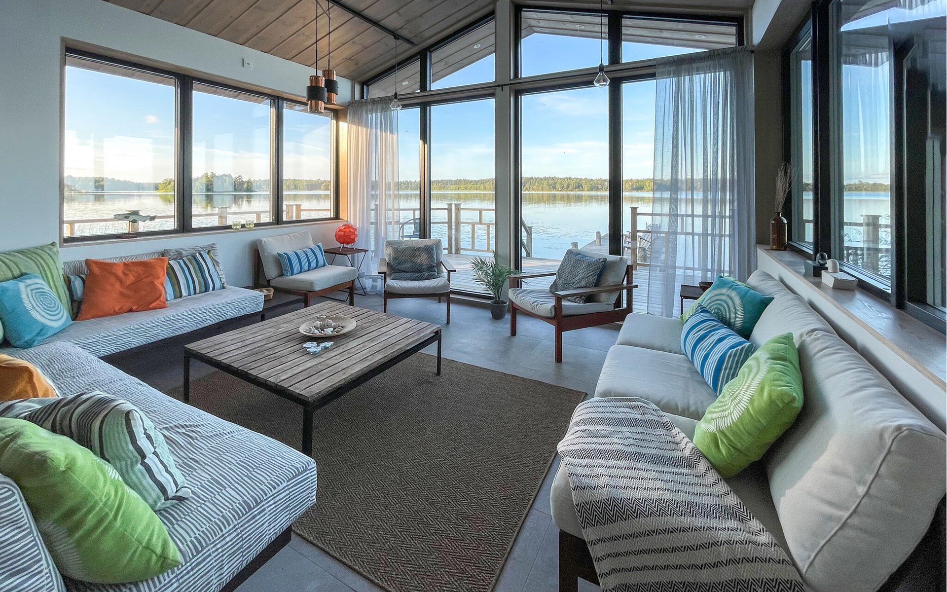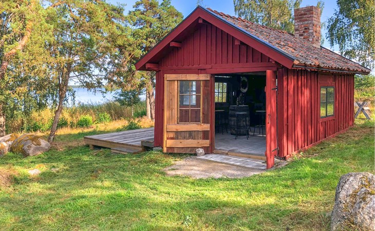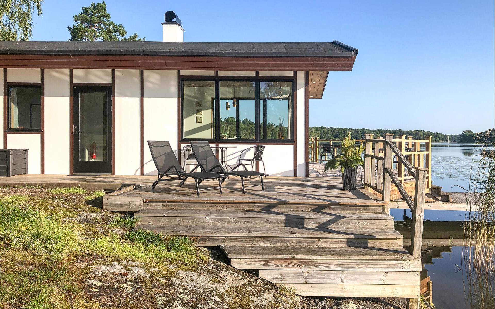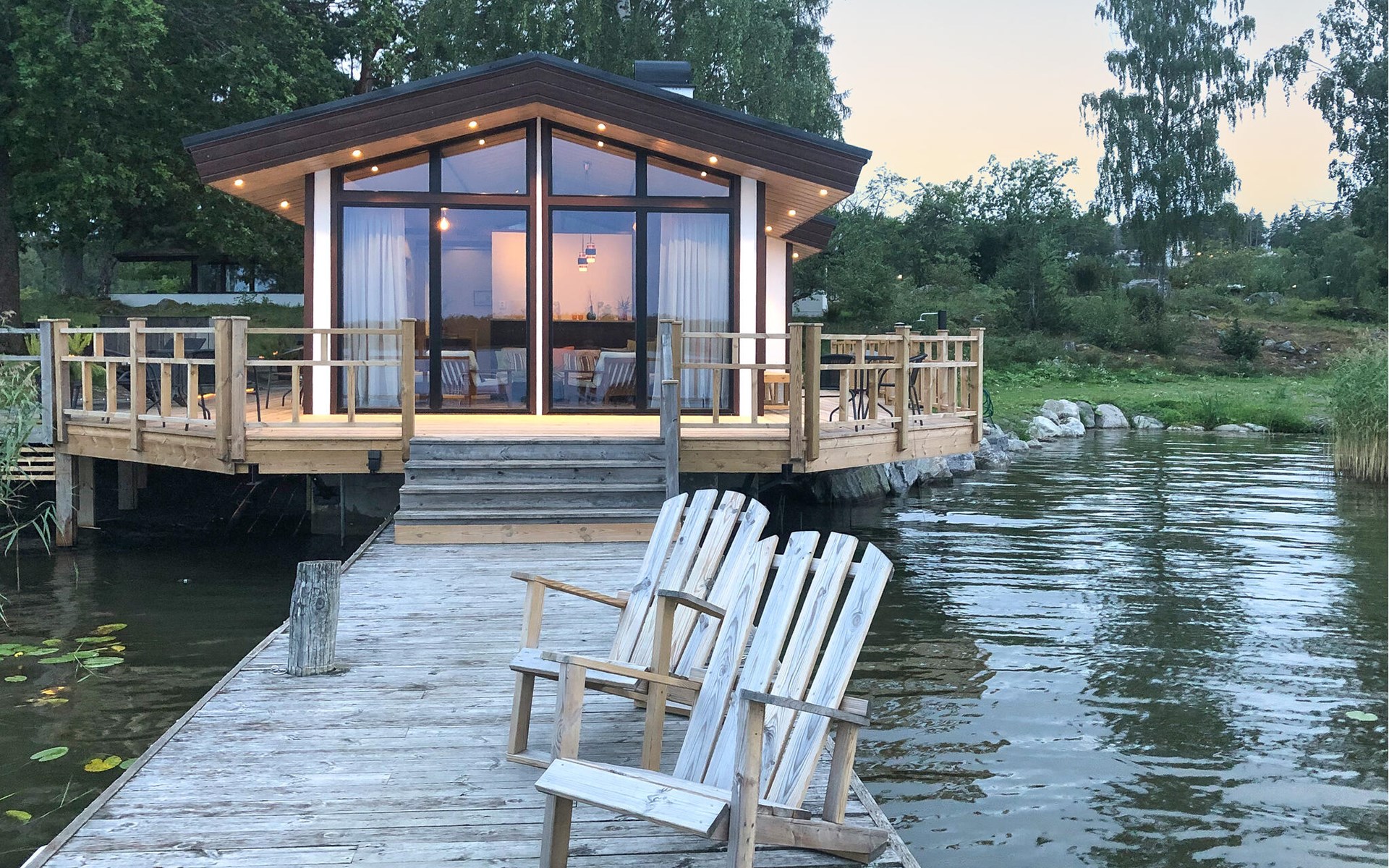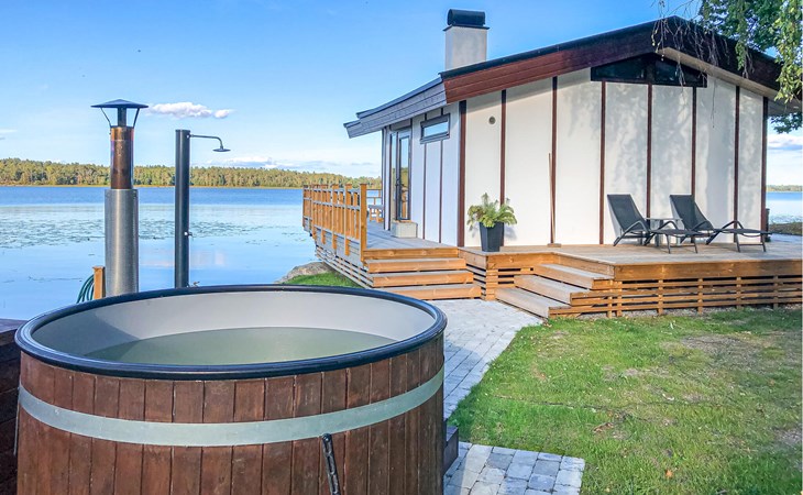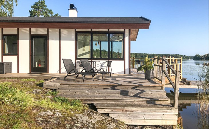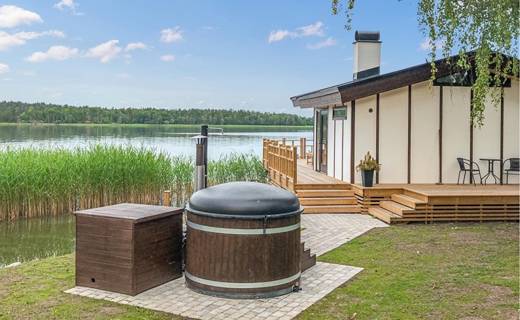 The house was designed by the well-known Danish architect Ole Helweg. It is located on Aspön and on the beach of Mälaren, between Strängnös and Enköping. You can reach the house by car. Large terrace with open fireplace. In the kitchen there are two dishwashers, two refrigerators with freezer compartment, charcoal grill and dining area. Large work surface and bar with bar stools to the open kitchen with a view of the lake. Massage tub in the bathroom. The large balconies are under roof and face south towards the lake. The large wooden deck connects the house with the lake cabin. Wood-fired sauna in the cabin by the lake and space to relax (there is also a fridge in the cabin). There is also a private jetty for swimming and a rowing boat. You can hire a motor from the owner on request. Free fishing in the lake. There is a ramp on the property that you can use to easily bring your boat from the trailer into the water and back. You live secluded and at the end of the beach promenade and surrounded by hills with oak forest. You can reach the sights of Stockholm in an hour. It is 45 km to the zoo in Eskilstuna and 35 km to picturesque Mariefred. The medieval Gripsholm Castle is also located here. From 2019 there will be a wood-fired palju and an outdoor shower by the sauna hut.
