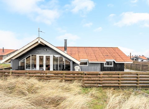 With a beautiful view of the dunes and in an undisturbed location, this lovely vacation home is situated in a beautiful area near Rødhus Strand. The bright rooms with modern furnishings and subtle colors are the ideal setting for an unforgettable family vacation, where you can fully enjoy the proximity of the sea. Relax here in a homely ambience. After an eventful day, make yourself comfortable together by the fireplace, listen to the crackling of the flames and leave everyday life far behind.