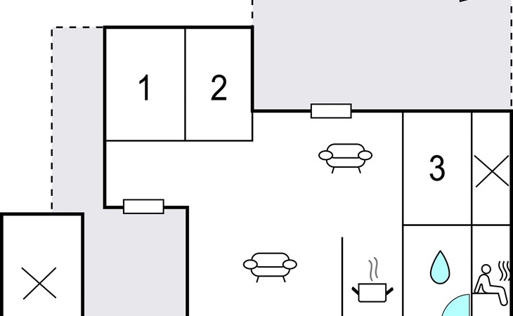 There is room for 6 people, divided into three spacious bedrooms - all with double beds. There is a nicely furnished kitchen, openly connected to the dining area and the living room, so that the family is also together while cooking and other living room activities.