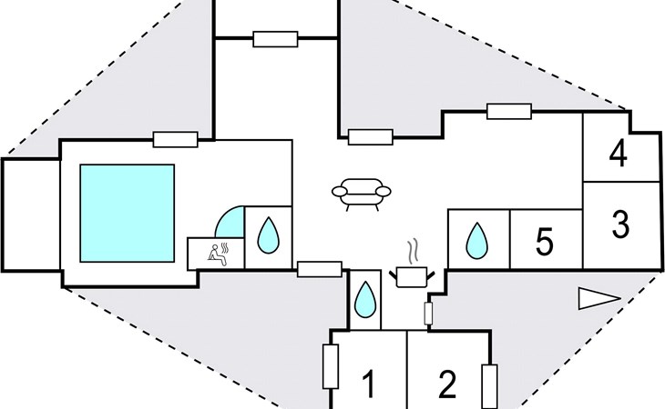 In the cozy seaside resort of Øster Hurup awaits you this fantastic luxury house. This is a vacation home of the very best quality, built according to the latest findings regarding thermal insulation and heating. The geothermal heat pump provides the energy for heating the rooms and the pool water and ensures low energy costs. With the three bathrooms, the spacious living room, the activity room and finally the generous pool area, this house is big enough for several families. Lots of fun is promised by the activity room and and the large pool area. The modern design and the successful architecture make this house very comfortable. Horseback riding, tennis, mini golf and fishing in the Rut & Take is possible.