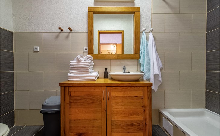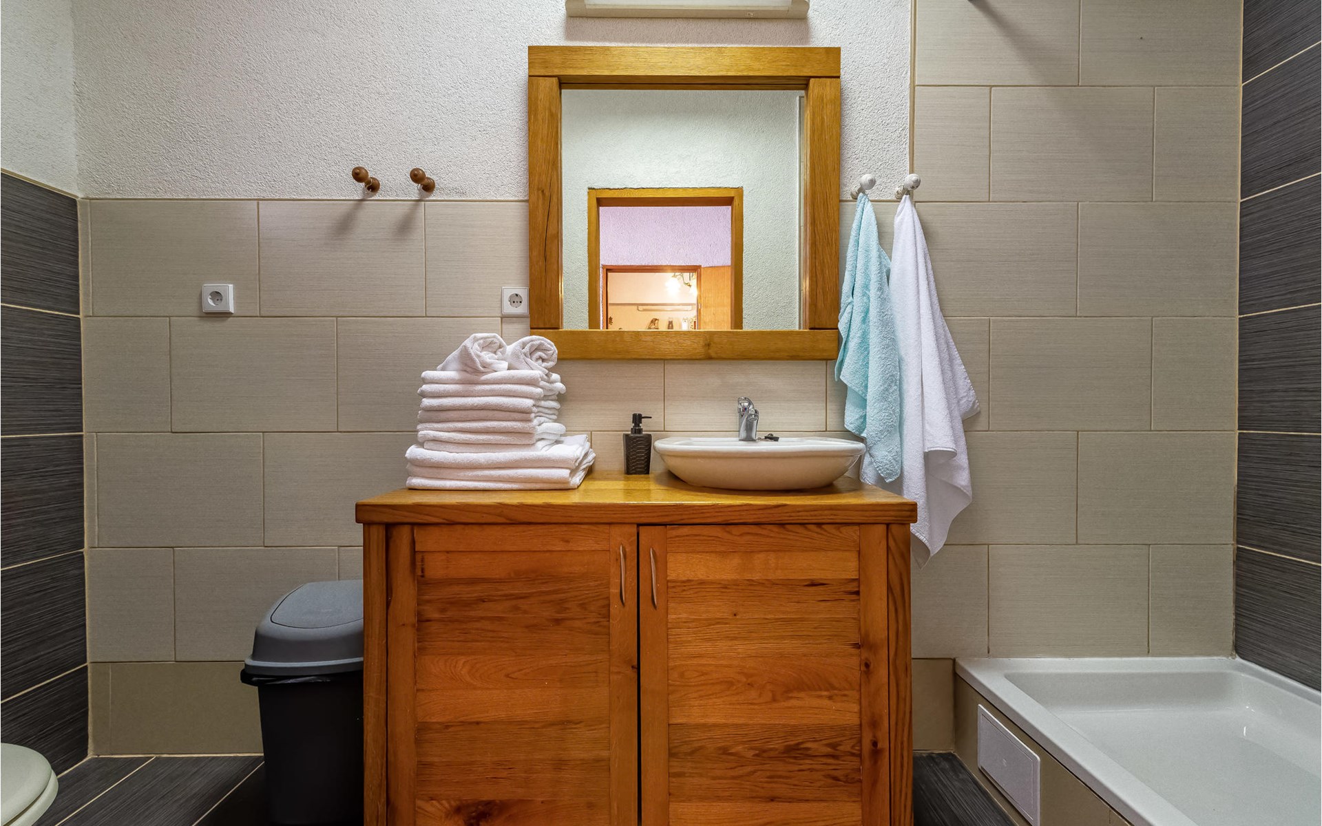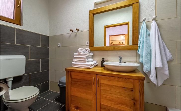 The apartment welcomes its guests in the basement of a house. With its cosy and attractive furnishings, it is the ideal place for a wonderful holiday at any time of year. Thanks to the air conditioning, you can enjoy pleasant room temperatures even in hot summers, and the beautiful view of the countryside completes your holiday relaxation.