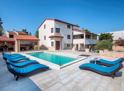 This inviting holiday home with pool is located in Donji Proloac near Imotski. It consists of two residential units with separate entrances that are accessible from the outside. The smaller apartment is on the ground floor and the larger one with a covered terrace is on the first floor. In front of the holiday home there is another covered terrace with a barbecue for fun barbecue evenings. There is play equipment for children on the lawn, so even the little ones won't get bored.