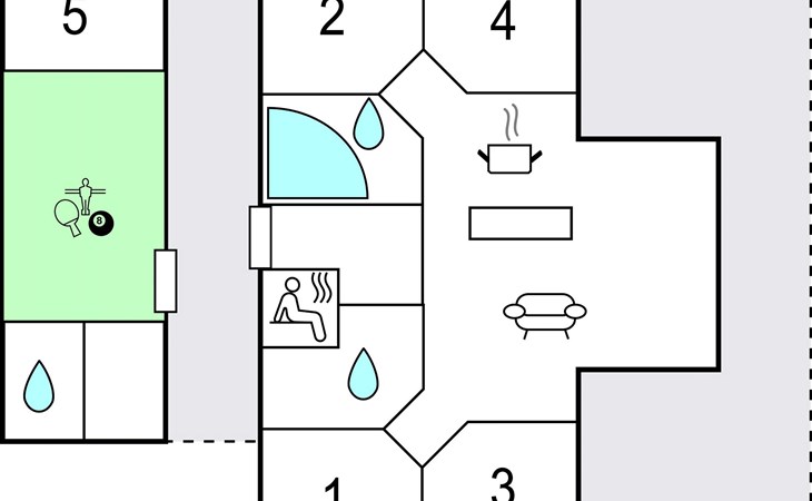 On a large open plot and just a few minutes walk from the North Sea at Grønhøj is this beautiful vacation home. The house has 4 spacious bedrooms and 2 bathrooms, one with whirlpool and the other with sauna. The heart of the house is the kitchen and the spacious, bright and cozy living room. Here the family can gather to cook, while others can amuse themselves with games or read a good book. On the beautiful terrace you can enjoy your coffee while children and teenagers romp in the garden.