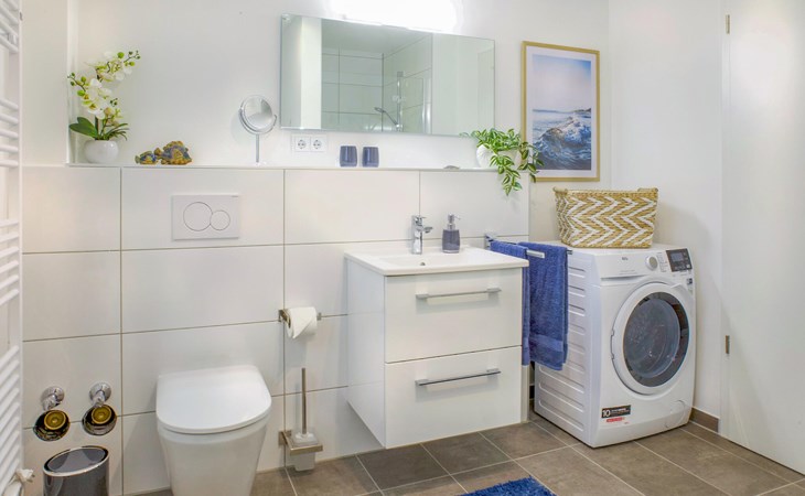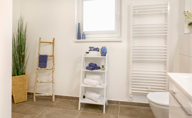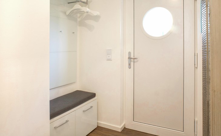 Outside the semi-detached holiday home, guests have a lockable cabin at their disposal. It contains a handcart and offers space to store bicycles.