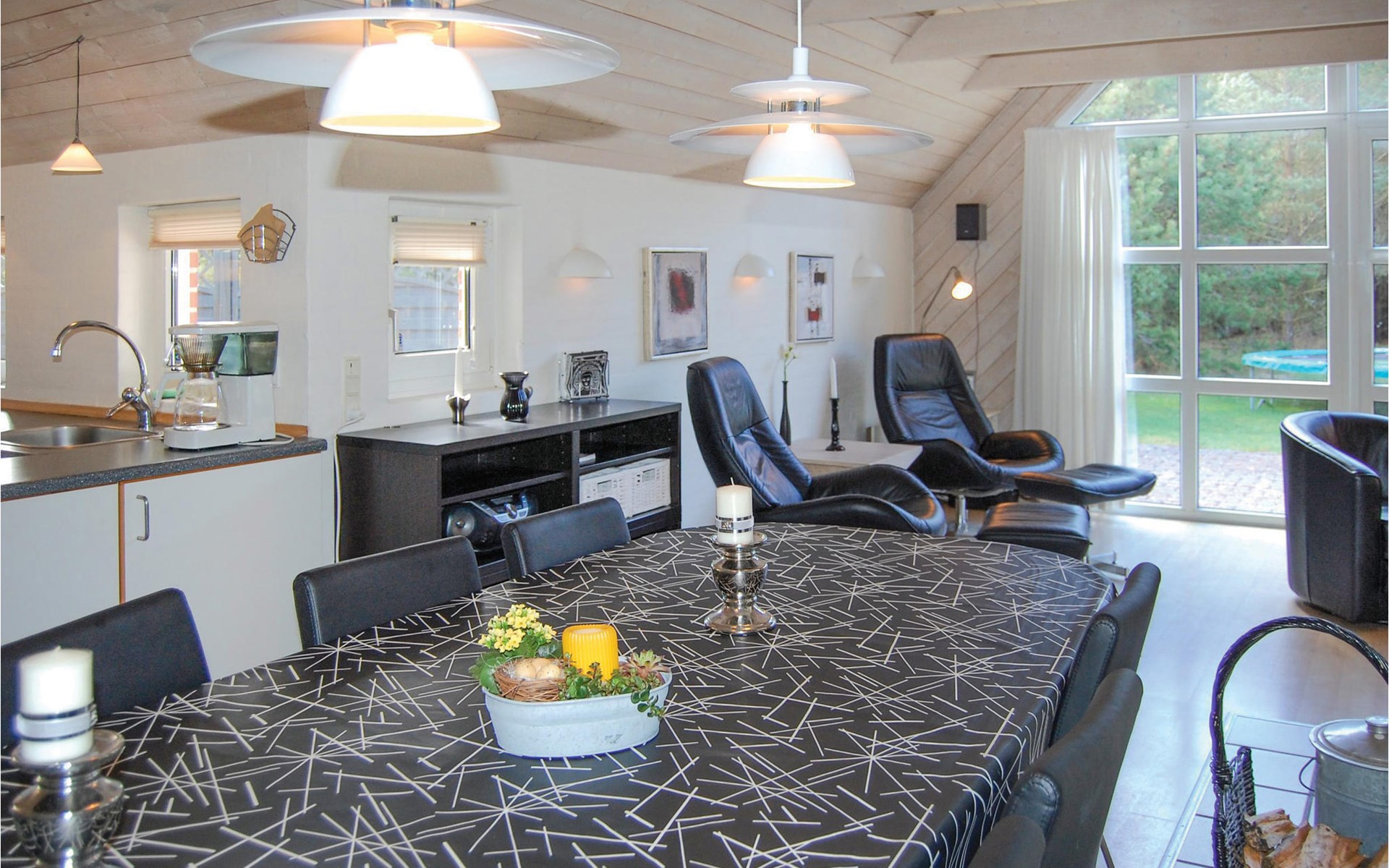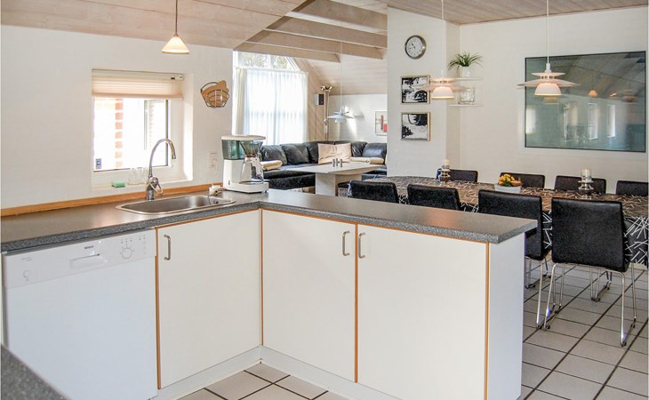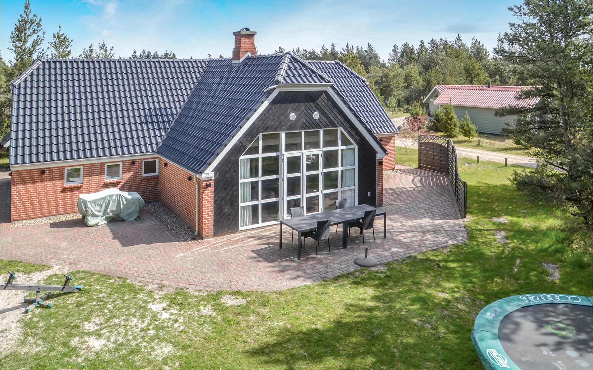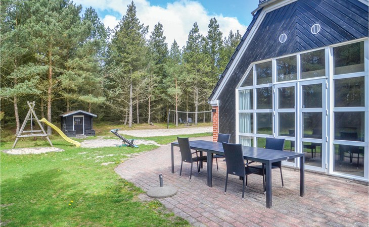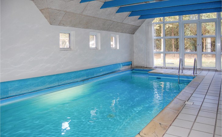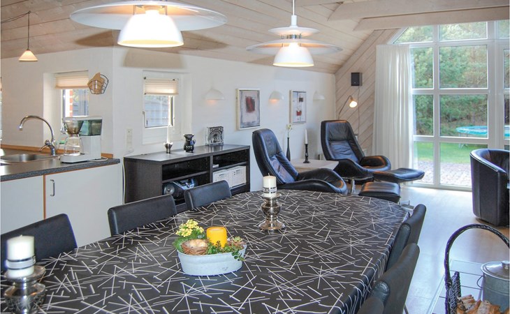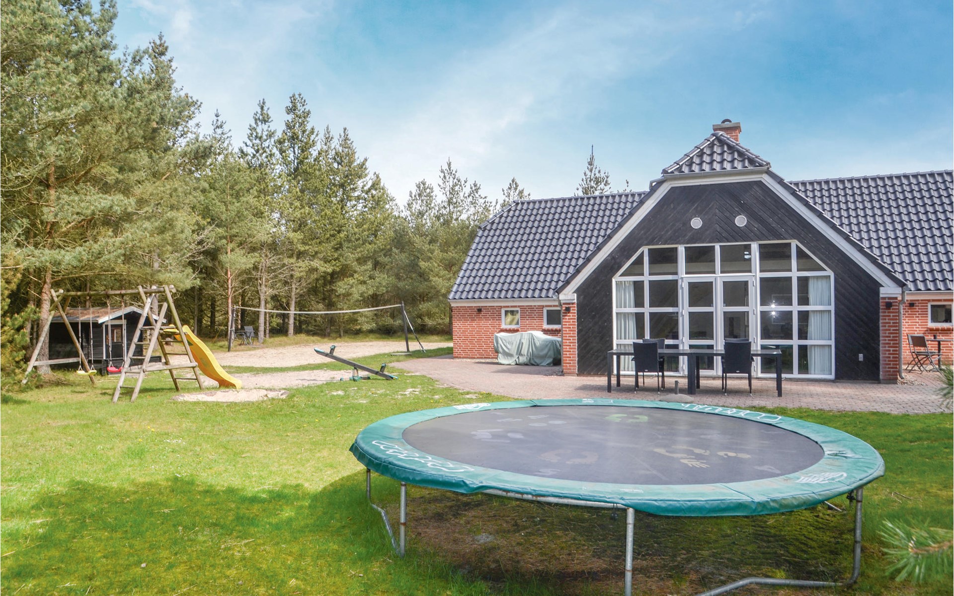 On one of the best nature plots in Houstrup lies this beautiful vacation home on two floors, spacious and very well furnished. This house enjoys a secluded location and is something for all ages. If you feel like swimming in the pool or relaxing in the jacuzzi, everything is here for you. With the many aids in the house, daily tasks are especially easy to do, so you'll also have plenty of time to get out into the beautiful nature that is right outside your front door. On the 1st floor there is an extra TV and games for children. There is a small freezer in the kitchen and a larger freezer in the tool shed. There is a beach volleyball court and trampoline on the large property. The house borders a coastal forest and you are quickly at the beach or in the forest Blåbjerg Klitplantage. Not far from the house you can ride Icelandic horses.
