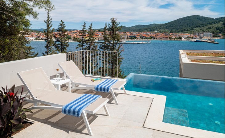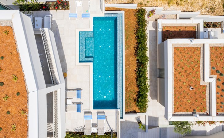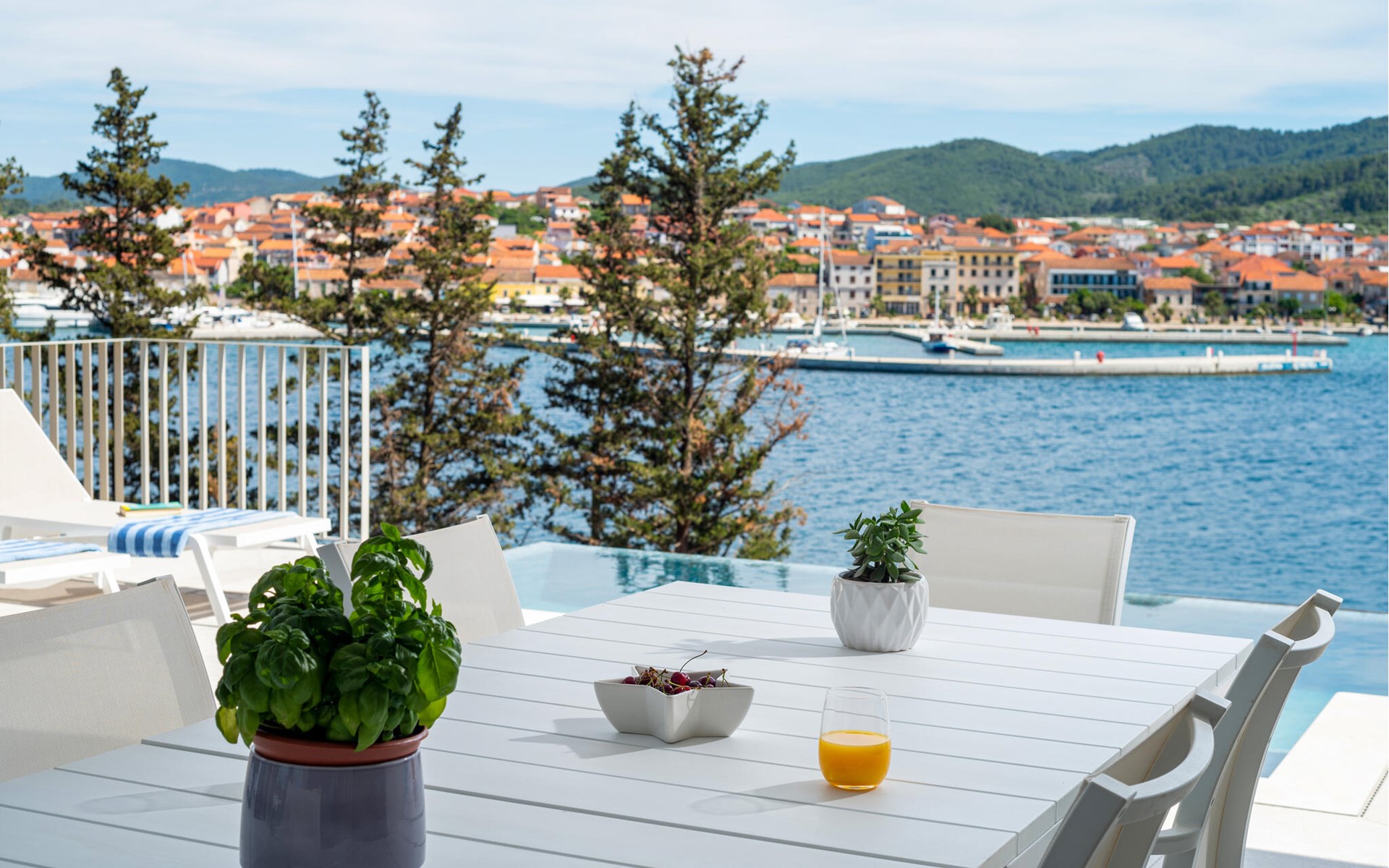 In the morning, step out onto the terrace, which opens harmoniously onto the sea, and take a dip in the refreshing pool. Have breakfast on the balcony, relax on the sun loungers with a light drink and round off the day with an atmospheric dinner with family or friends under the stars.