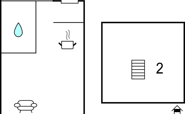 The balcony is covered so that it can also be used in bad weather. The bedroom downstairs has a single bed, which can be extended to two beds by pulling it out. There is a reading corner with a cosy armchair in the room. The upper bedroom has a double bed and a reading corner with a comfortable sofa. Both bedrooms have blackout blinds.