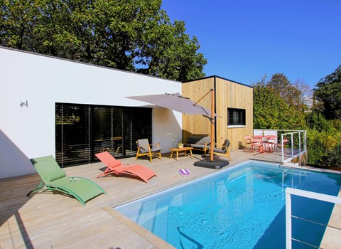 Enjoy a sunny break in this spacious holiday home with pool and idyllic garden.