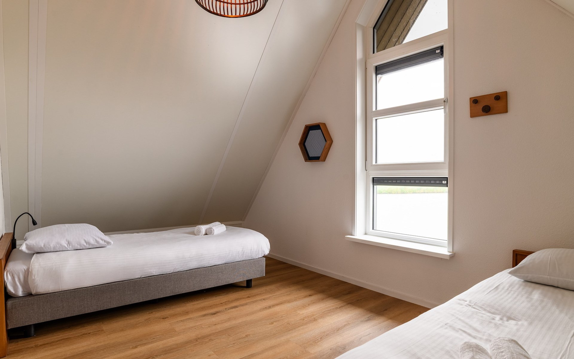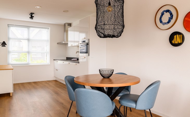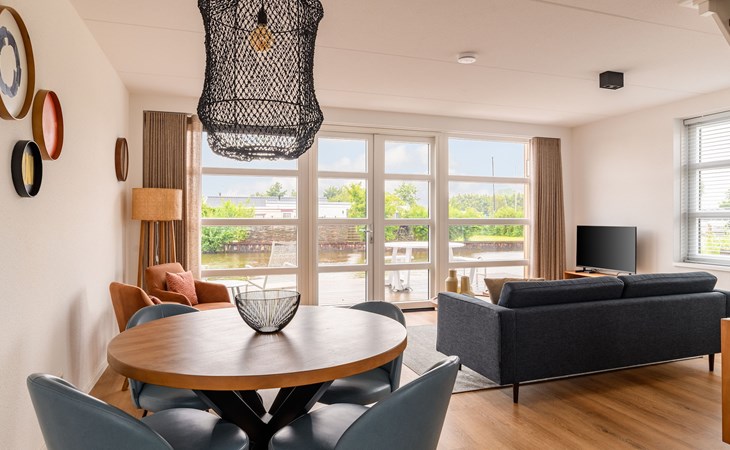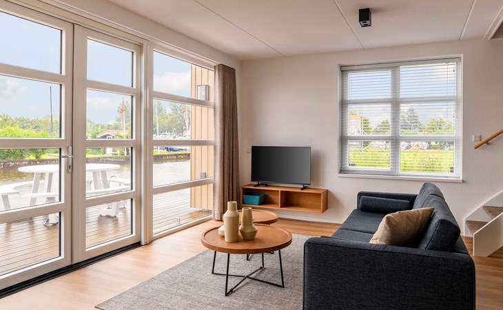 The patio doors in the living room give you access to the furnished patio by the water. Here you can pleasantly dine together overlooking the Tjonger and the boats that sail by to the marina of Langelille. In addition, you can fish in the fish-rich water from your jetty or take a dip in the water. The jetty has a swimming ladder. Furthermore, you can moor a small boat at your private dock.