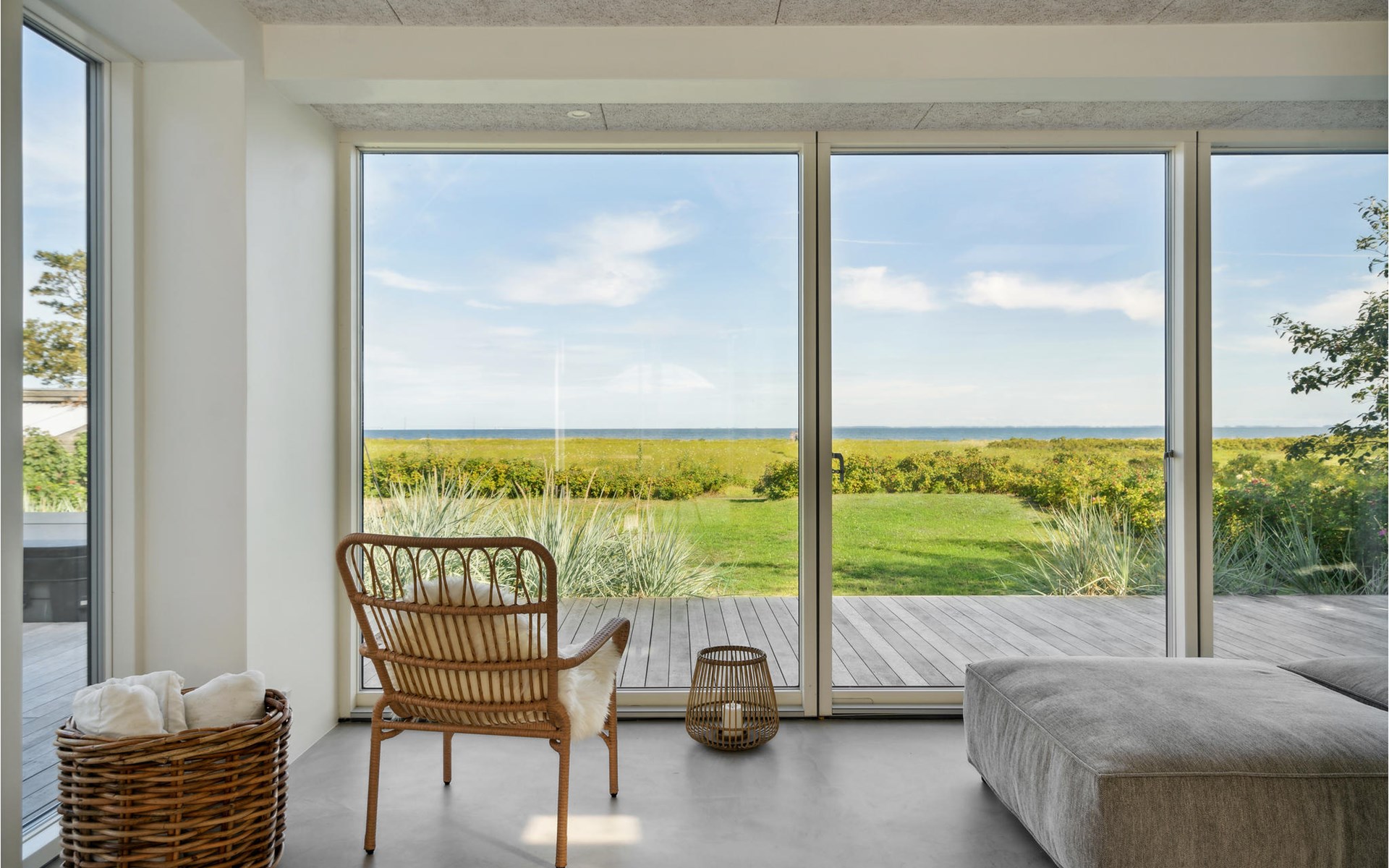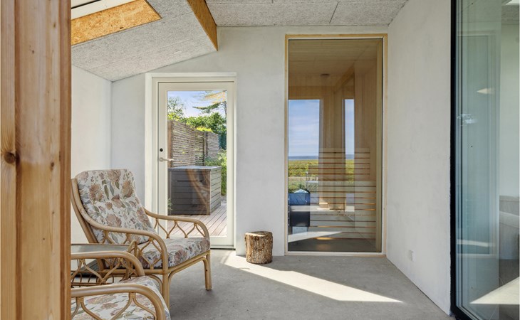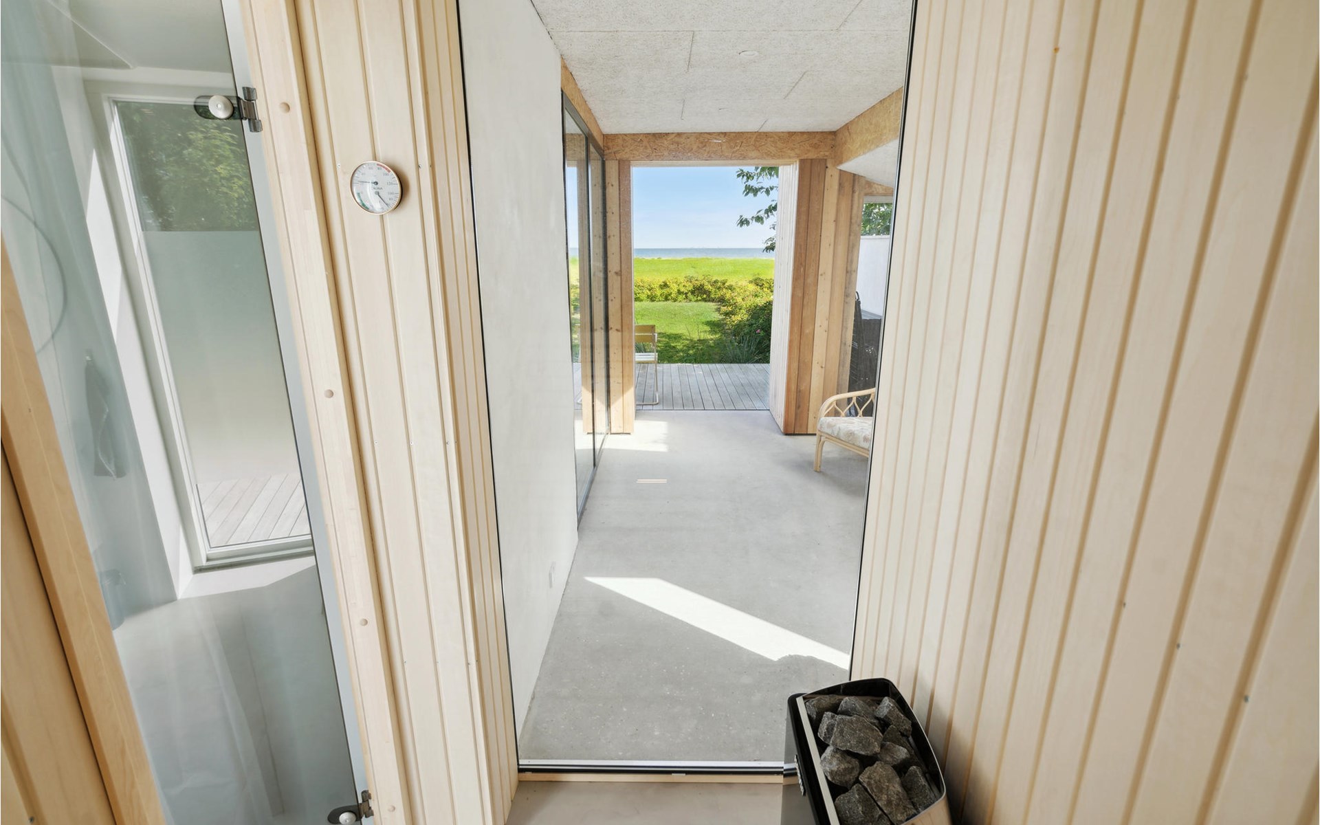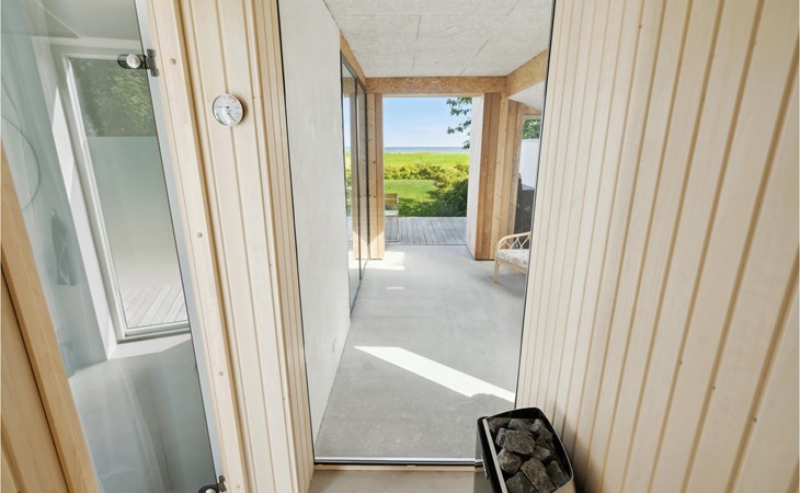 Look forward to your family vacation in 1st row to the water and feel at home in this modern house. The modern architecture and the focus of the rooms on the coast and the Great Belt combine indoor and outdoor living. Make yourself comfortable on the high-quality furniture, listen to the crackling of the fireplace and relax. You don't really need a TV here, because the view alone will enchant you. The open and bright kitchen will not only delight amateur chefs. Take your delicious meals outside and enjoy them al fresco. Afterwards, you can start your wellness program in the sauna, enjoy the view of the water and relax to your heart's content.