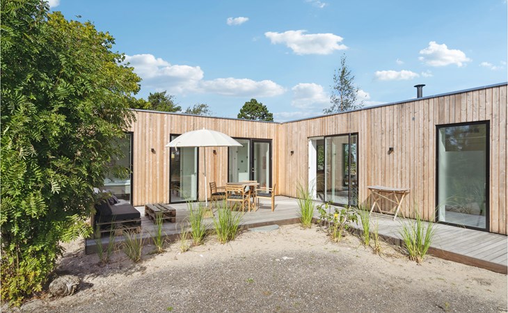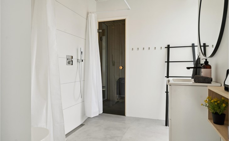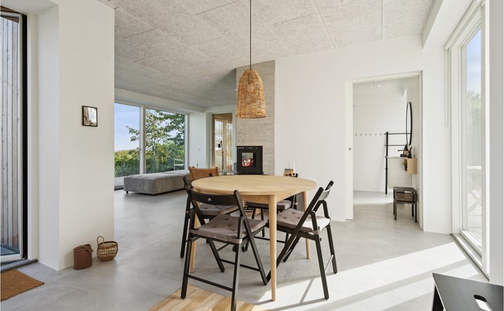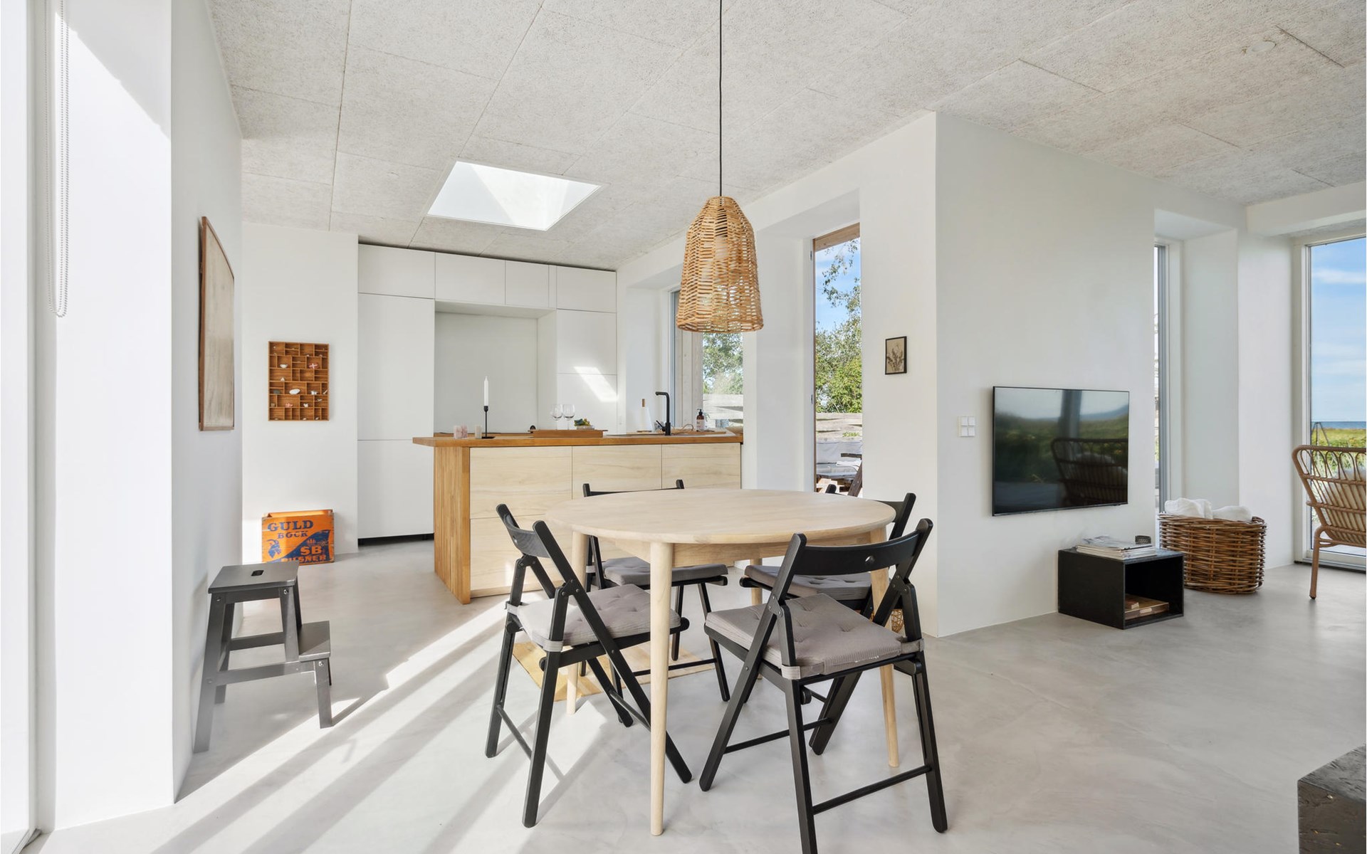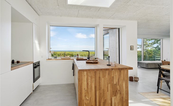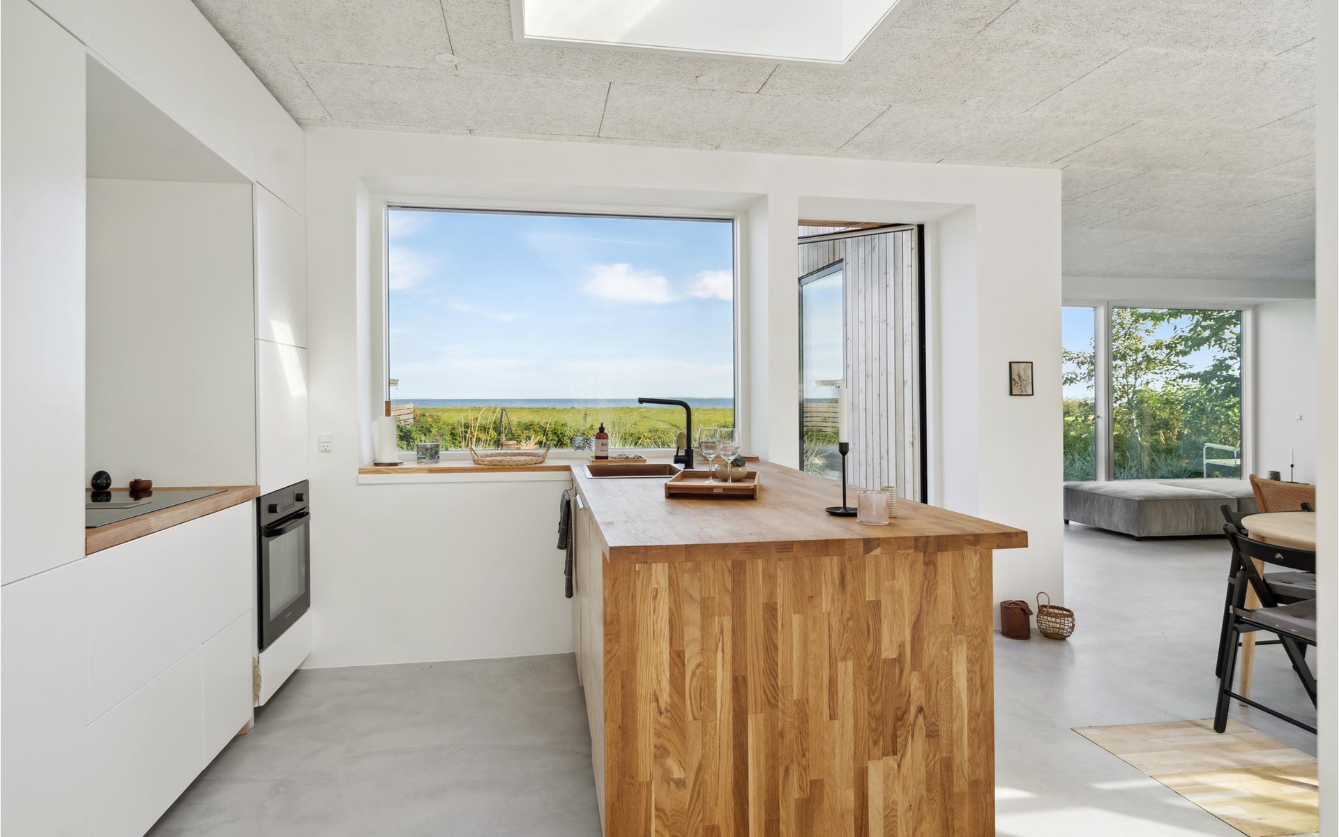 Look forward to your family vacation in 1st row to the water and feel at home in this modern house. The modern architecture and the focus of the rooms on the coast and the Great Belt combine indoor and outdoor living. Make yourself comfortable on the high-quality furniture, listen to the crackling of the fireplace and relax. You don't really need a TV here, because the view alone will enchant you. The open and bright kitchen will not only delight amateur chefs. Take your delicious meals outside and enjoy them al fresco. Afterwards, you can start your wellness program in the sauna, enjoy the view of the water and relax to your heart's content.