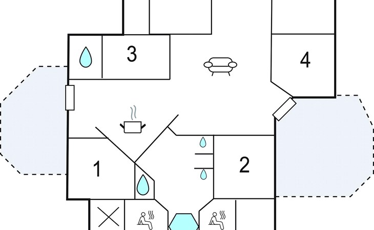 - Some of the photos may be examples of accommodation. The type of flooring and the colour of the furnishings and the house may vary. Whirlpools and saunas are identical in all houses of this type.