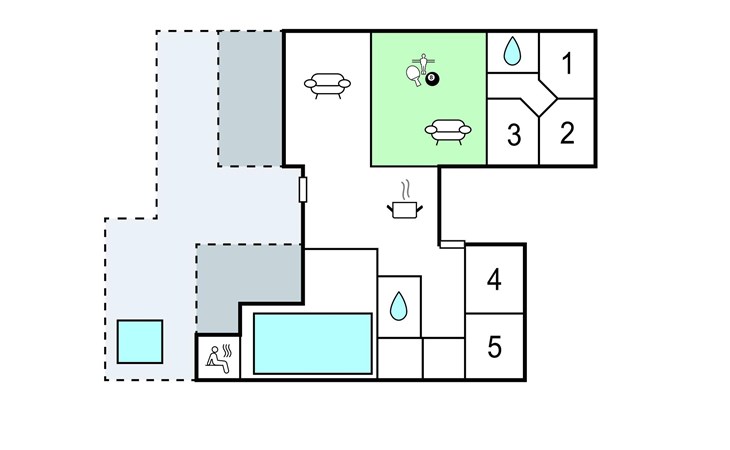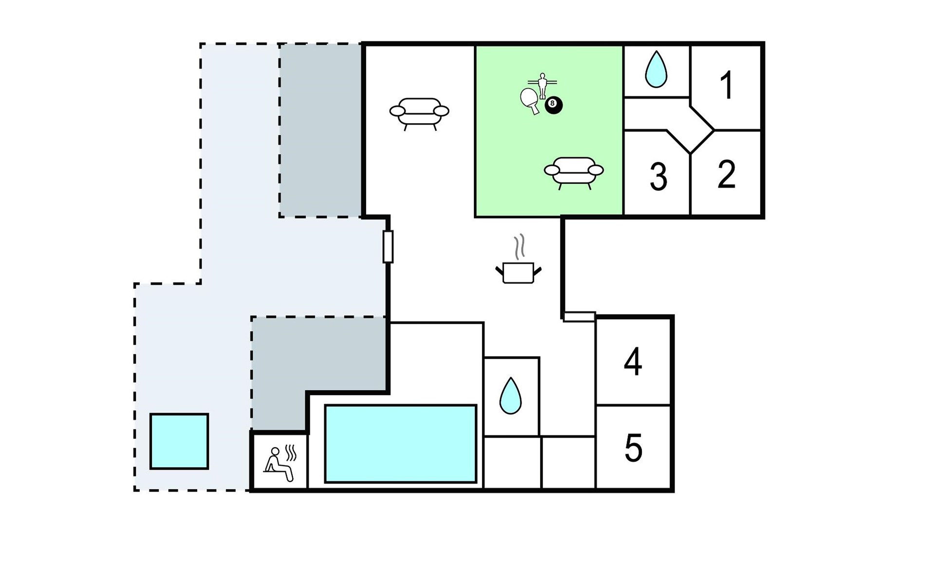 Plenty of space for two families or a larger group of friends in this fantastic vacation home with many luxurious features. It is the ideal setting for a vacation with lots of activities in the house and numerous excursion options. Prepare a sumptuous breakfast in the morning in the modern, open kitchen, while your family or friends are already waiting for the culinary specialties at the long dining table. Then it's time for fun and games. Challenge your children to a game of pool, table tennis or table soccer. Or play together on the games console. Then jump into the beautiful, bright indoor pool or indulge yourself in the whirlpool in the outdoor area. You shouldn't miss out on a sauna session either. The many play equipment in the garden is also a great pastime for children. On the spacious terrace with comfortable seating, you can have a barbecue in the evening and round off the day in good company.