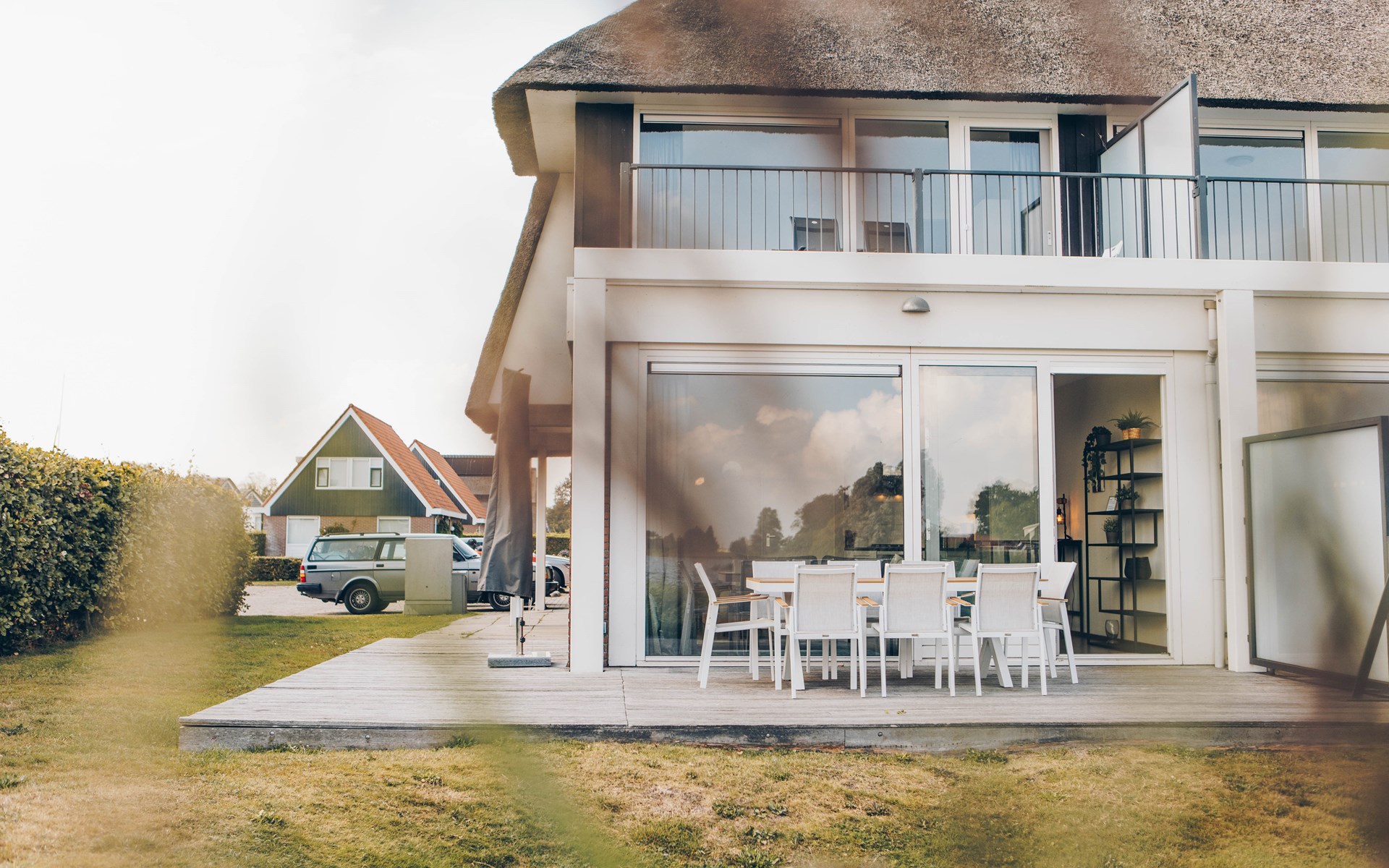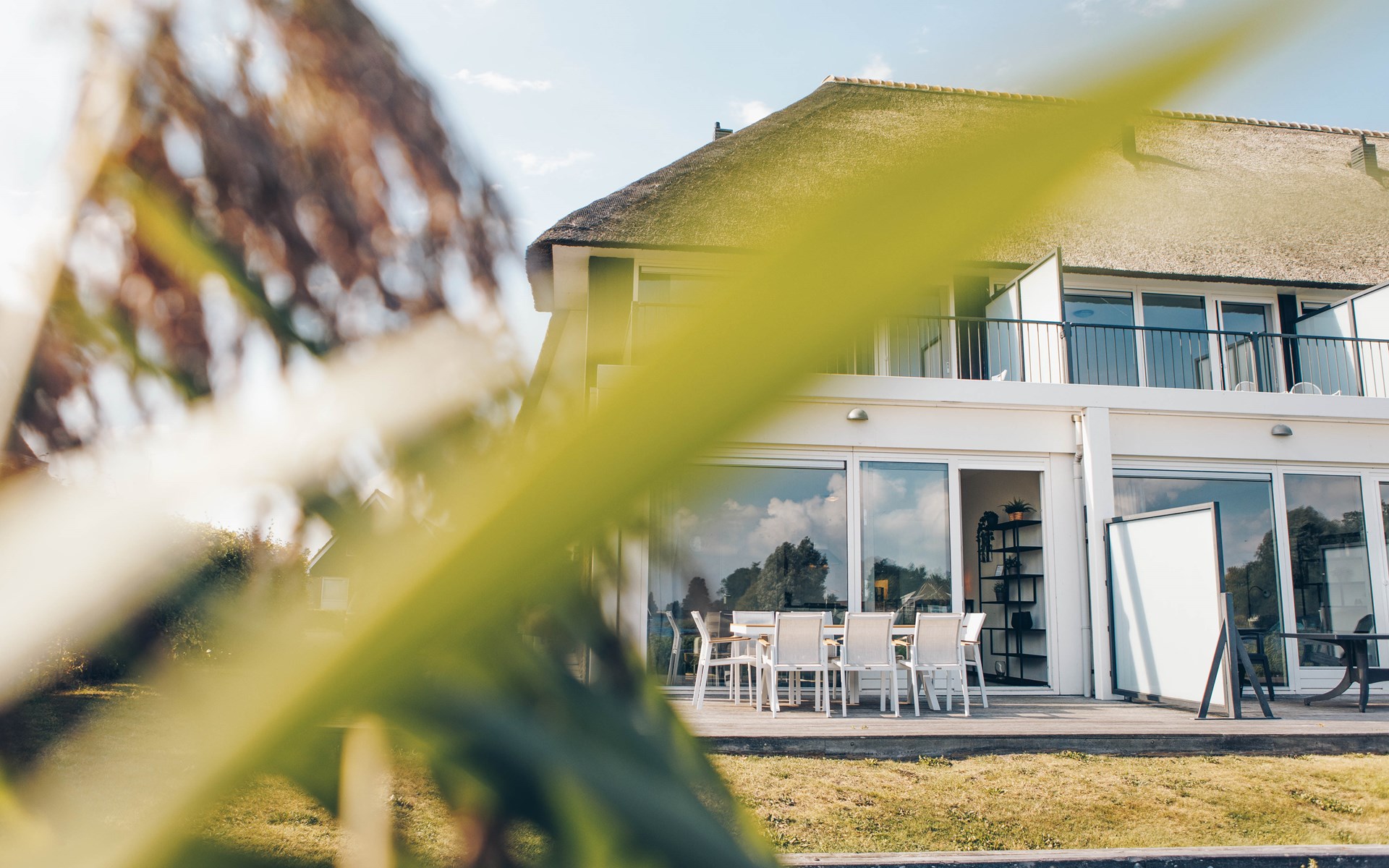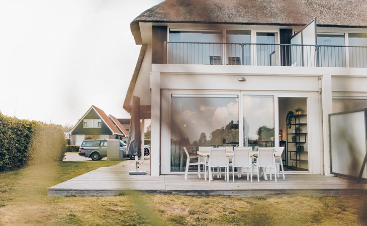 Beneath the charming thatched roof lies a comfortable and tastefully furnished residence. Large windows flood the rooms with natural light and offer beautiful views. The cosy living room connects to the open kitchen, fully equipped for extended cooking or simply enjoying time together. Through the sliding doors, you step onto the waterside terrace — the perfect spot for a sunny breakfast or evening drinks. Upstairs, a second terrace offers even more enjoyment with views over the lake.