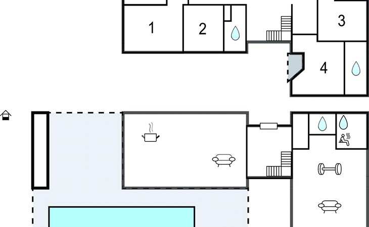 Discover the extensive garden, which promises plenty of fun and relaxation. Discover the pool with sun loungers and spend many hours swimming and sunbathing. Your evenings can be rounded off with a barbecue while the more adventurous members of the family climb the 6 metre high climbing wall.