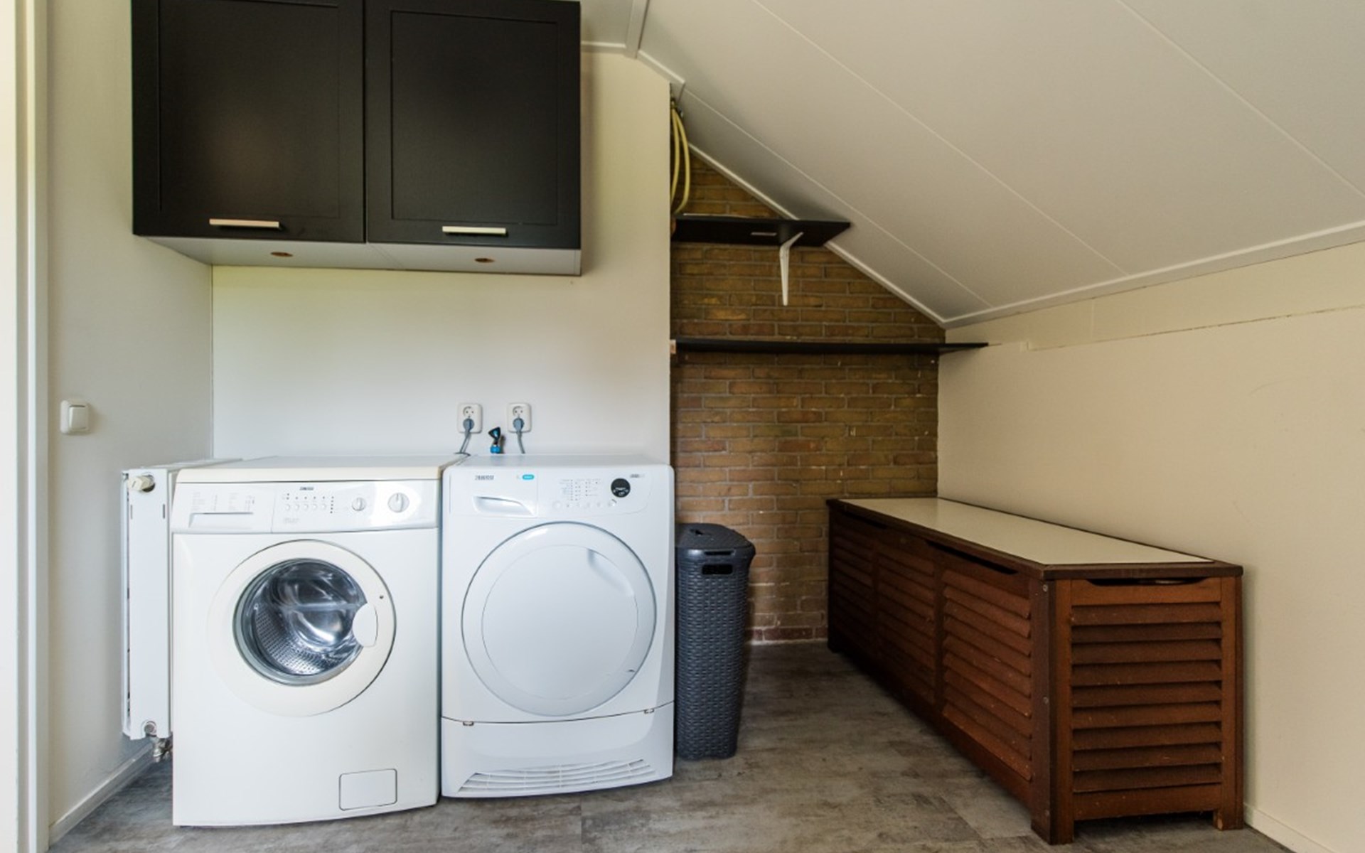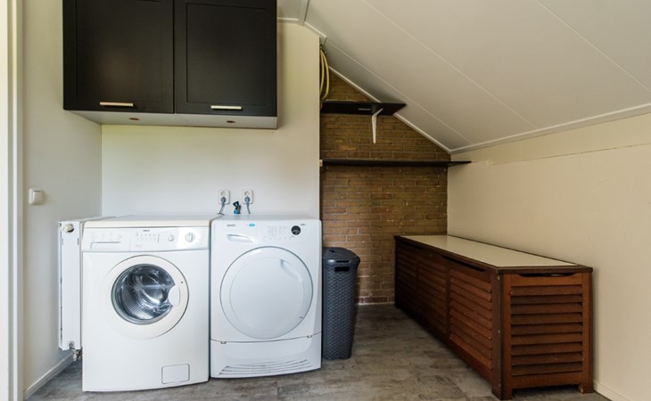 The washing machine is in the storage room. The house has a garden with 2 terraces on the south and west with garden furniture.