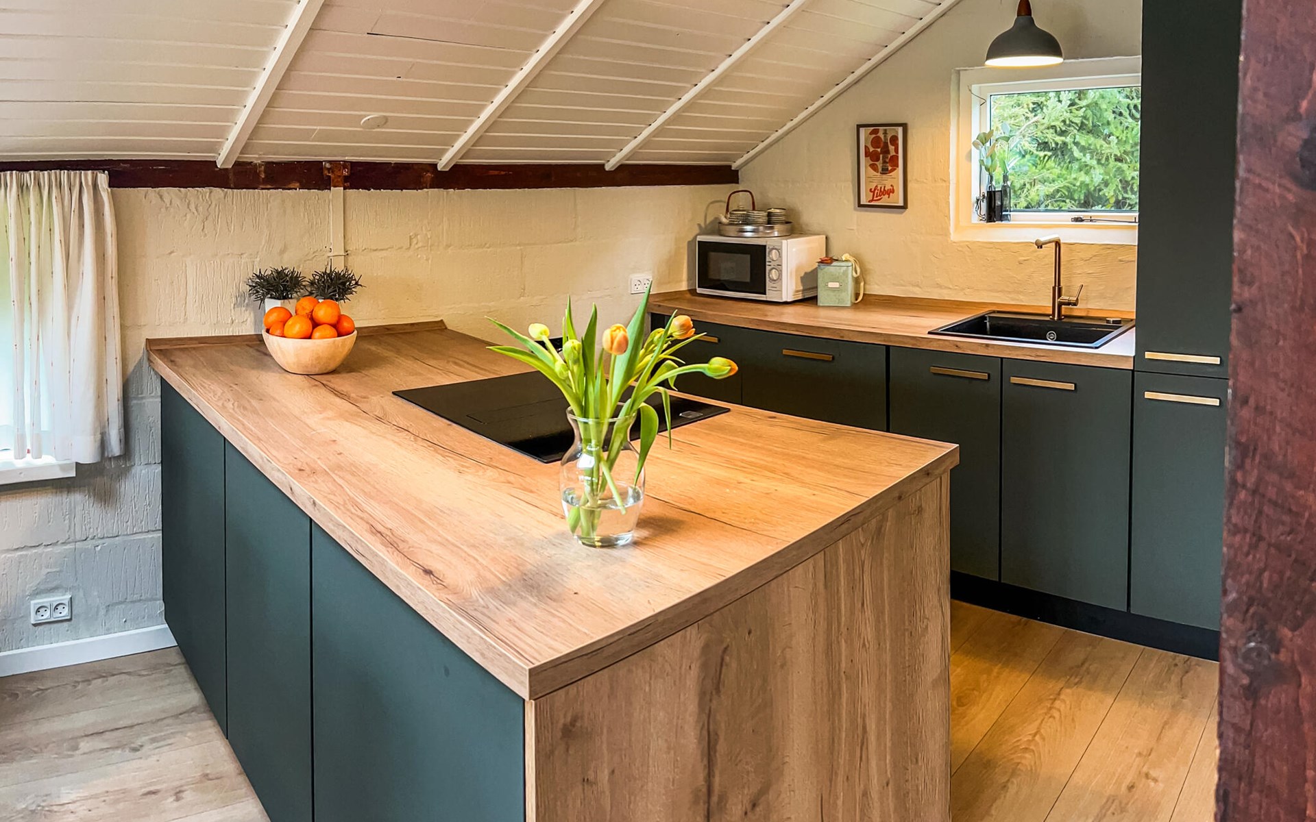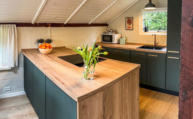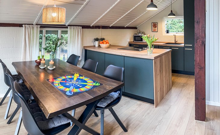 This idyllically situated house welcomes you with an inviting atmosphere: a beautiful wooden look, cosy sofas and a modern kitchen ensure that you can quickly relax and recharge your batteries. Listen to your favourite music, stream an exciting series or prepare a delicious meal together in the kitchen. And when the evenings get cooler, light the wood-burning stove for cosy warmth.