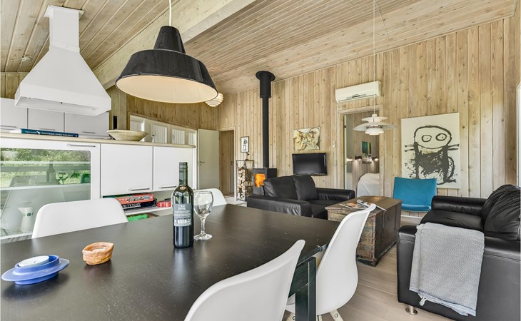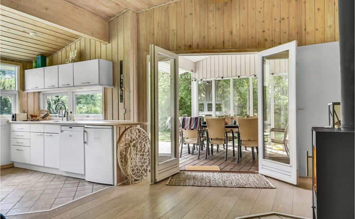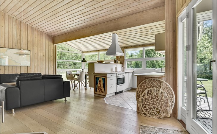 When you enjoy the vacation meals together at the dining table here, you have a wonderful view through floor-to-ceiling windows into the garden. The house has a beautiful daylight incidence and thus looks particularly inviting. Make yourself comfortable on the cozy sofa in the living room and fire in the fireplace, the crackling flames create a cozy atmosphere.