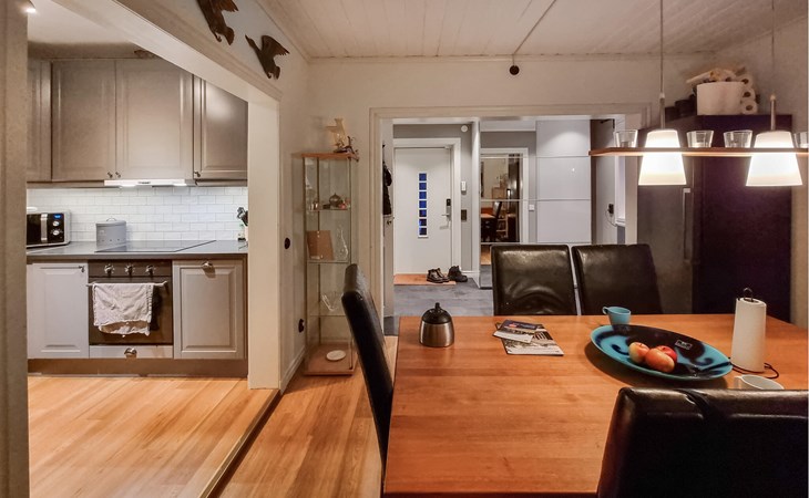 Look forward to escaping city life and spending a pleasant vacation in this spacious house. Together with your family, you can relax and discover tasteful rooms whose familiar charm exudes comfort. On two floors, you can experience the feeling of home and get together for movie nights in the living room or organize cooking evenings.