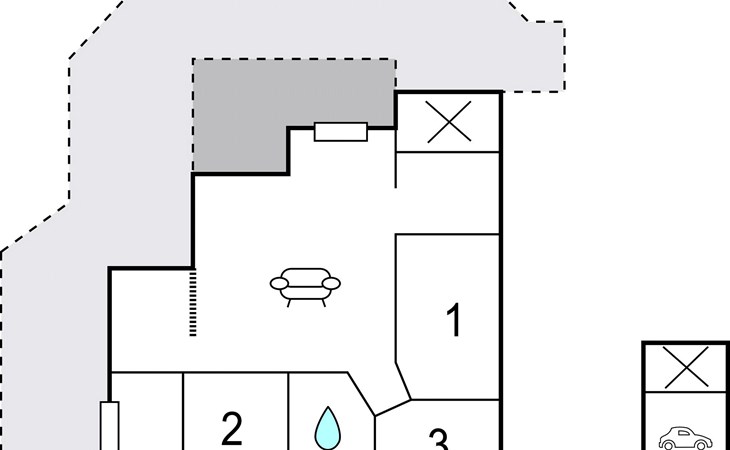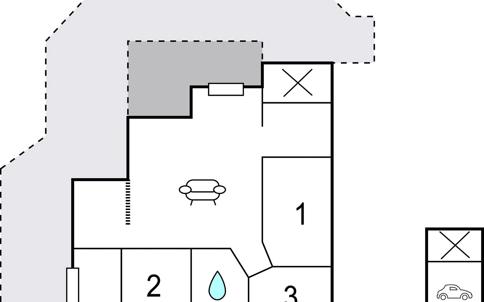 From the living room a door leads to the partially covered terrace in sunny position. The garden has been designed with the children in mind: slide, swing, sandbox, basketball hoop and fire pit are available.