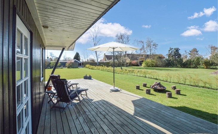 From the path in front of the house you can see the sea in the background. The child-friendly beaches with white sand and bright blue bathing water are typical for the west coast of the island of Zealand.