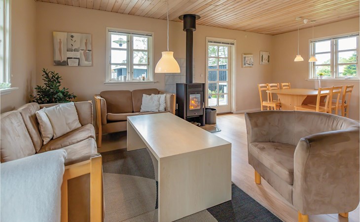 An attractive cottage with open kitchen-living room and wood-burning stove, from which you can step out onto the beautiful sun terrace.