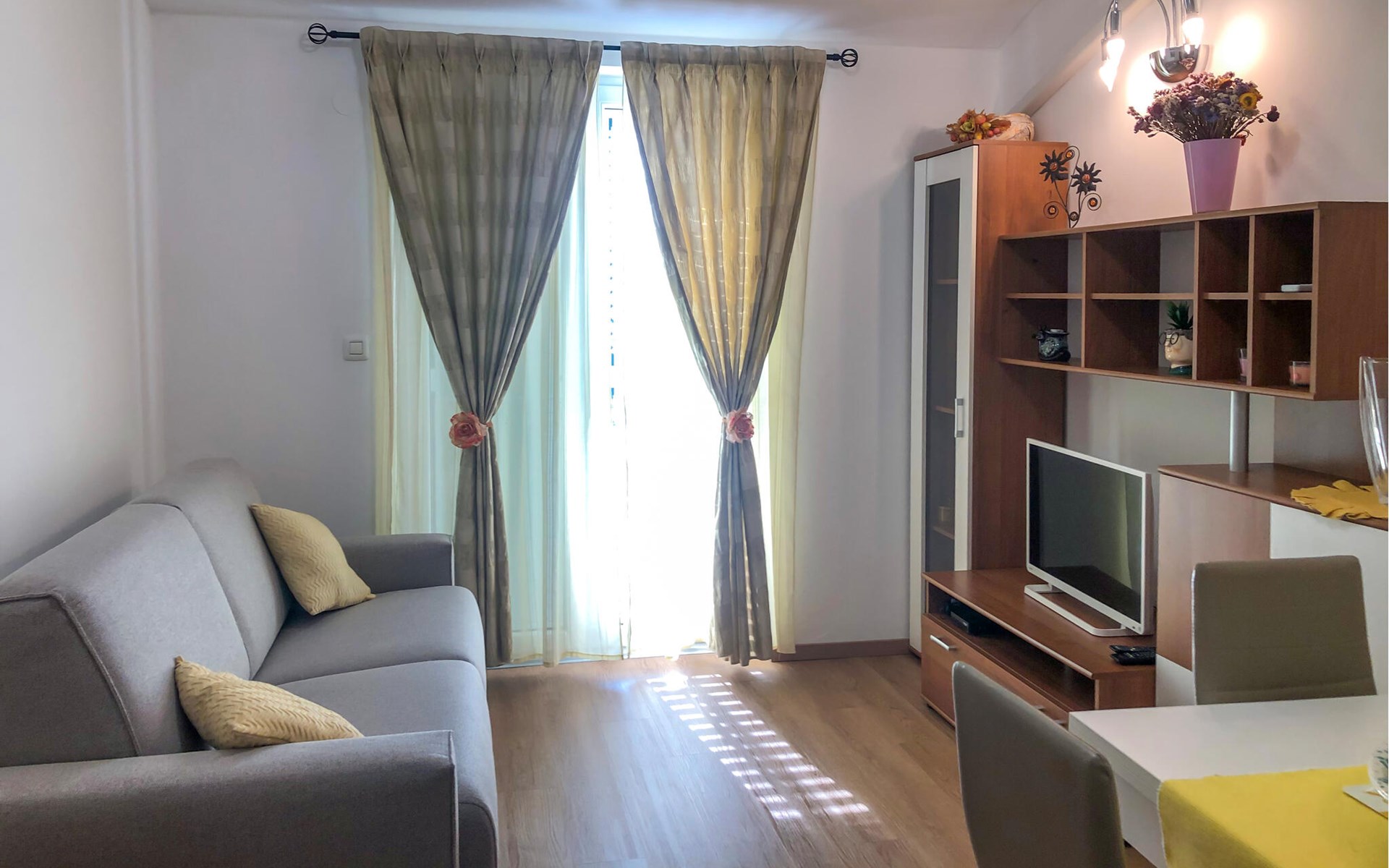 You will like this cozy and simply furnished apartment. The familiar furniture combined with bright flowery decorations creates a wonderful atmosphere to feel good. Here you can make yourself comfortable with your family for a vacation and enjoy your time in Croatia, while you do not have to give up anything to have a relaxing vacation.