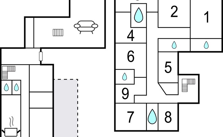 Due to the practical room layout as well as the spacious grounds, the vacation home is ideally suited for trips with the extended family, ther sports group or for club trips.