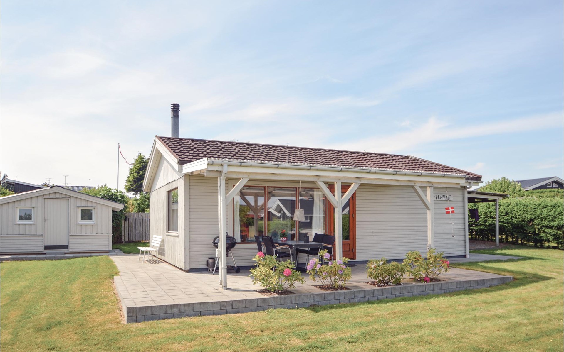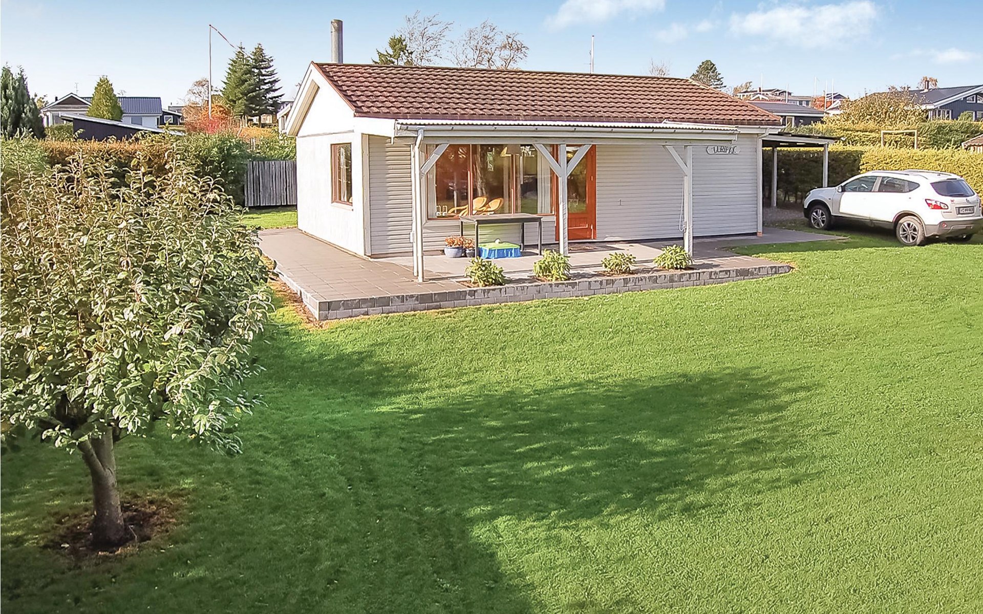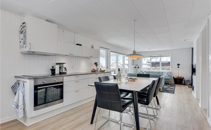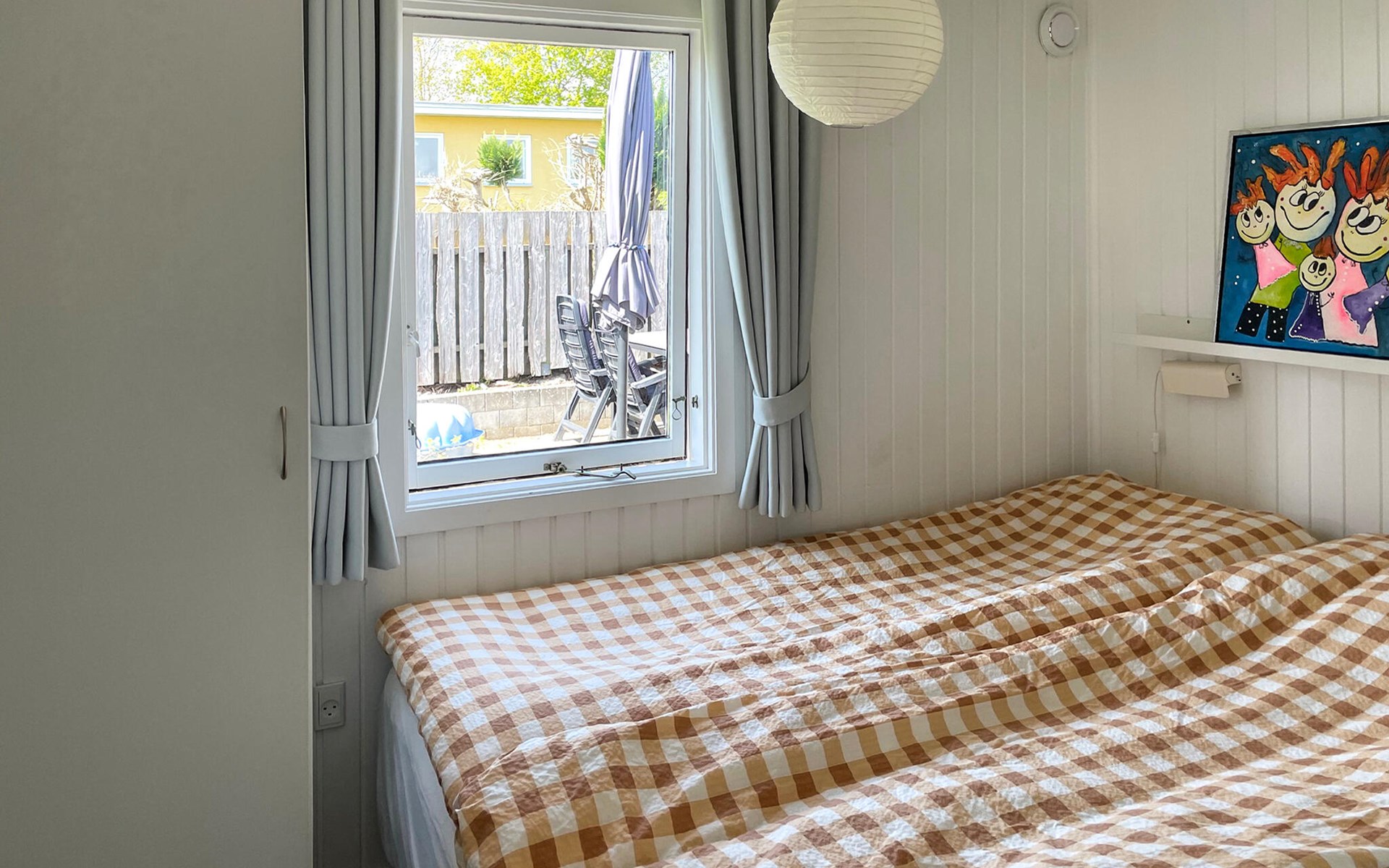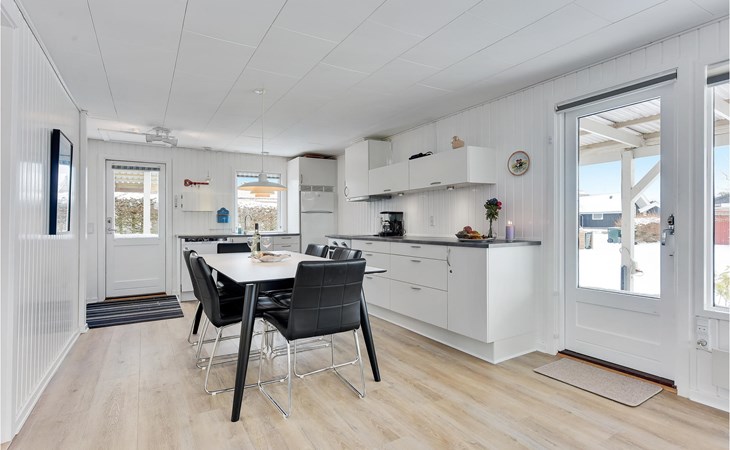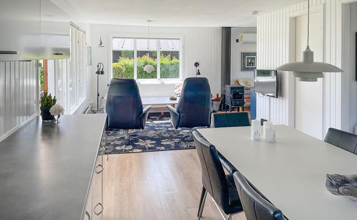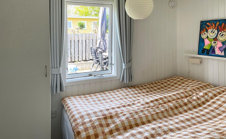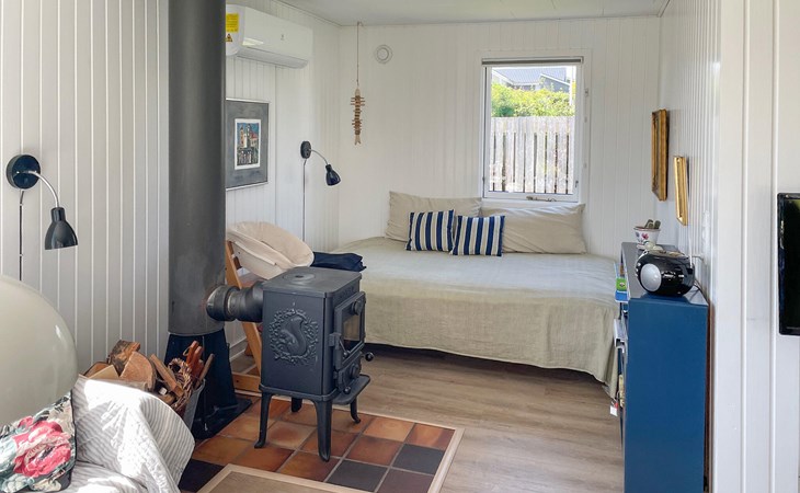 Close to the water and in a quiet street at Hejlsmindes cottage area lies this cozy cottage. The house is bright and friendly furnished in Scandinavian style. The living room and kitchen are connected and there are two bedrooms, each with a double bed and an extra place to sleep on a good sofa bed. Outside is a nice, partly covered terrace where you can enjoy the bright evenings and sunny days.