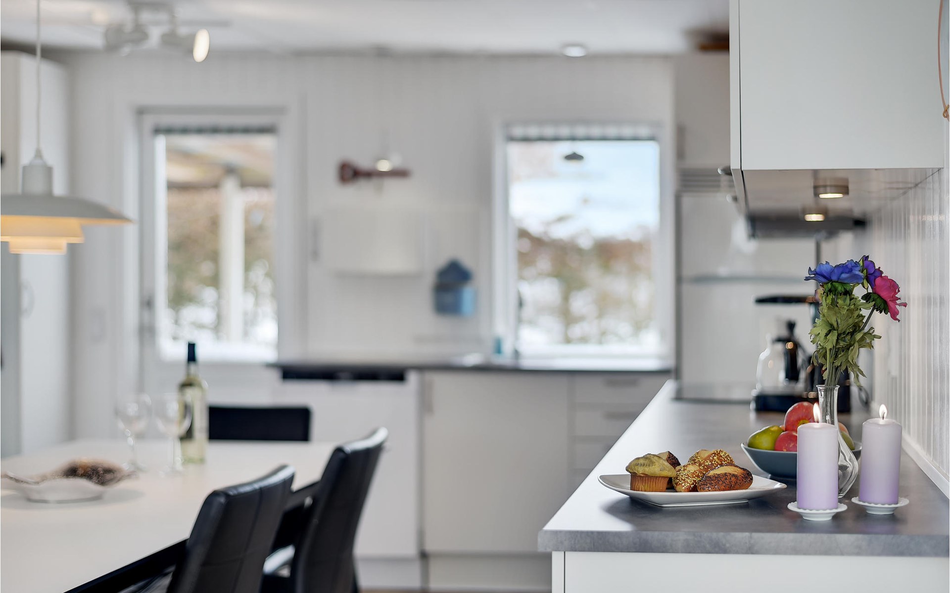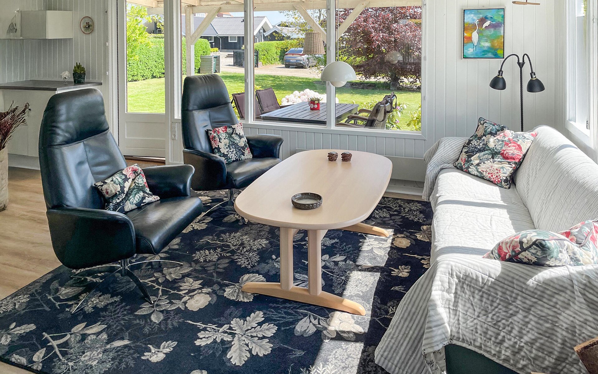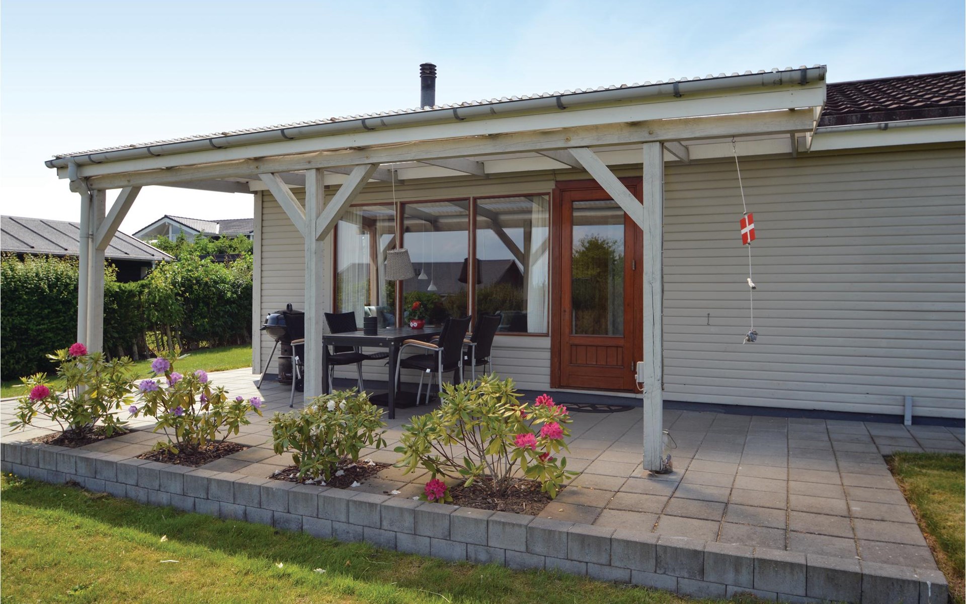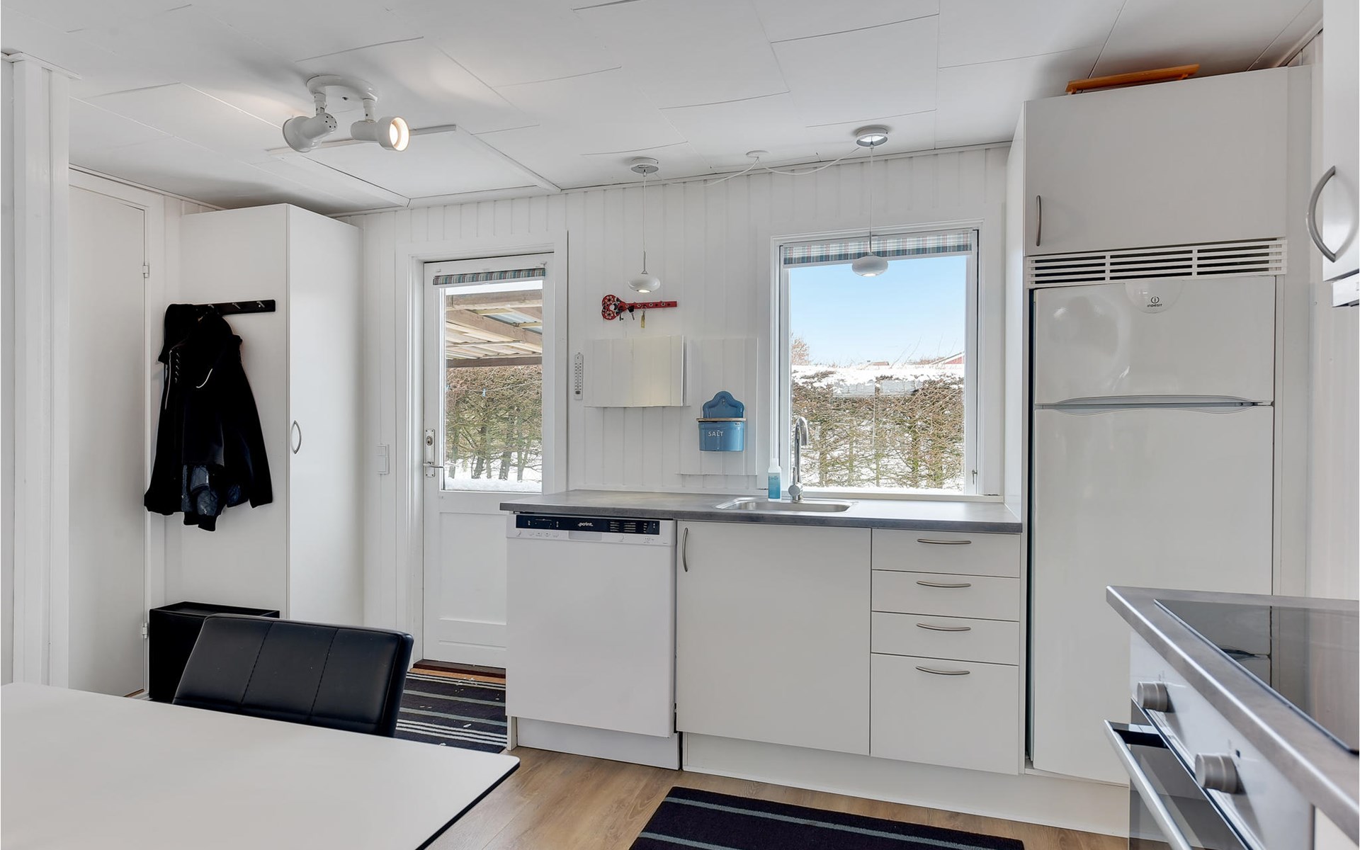 Close to the water and in a quiet street at Hejlsmindes cottage area lies this cozy cottage. The house is bright and friendly furnished in Scandinavian style. The living room and kitchen are connected and there are two bedrooms, each with a double bed and an extra place to sleep on a good sofa bed. Outside is a nice, partly covered terrace where you can enjoy the bright evenings and sunny days.