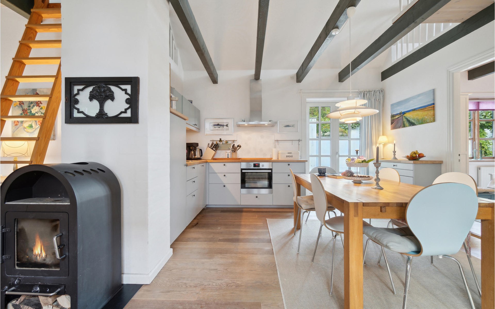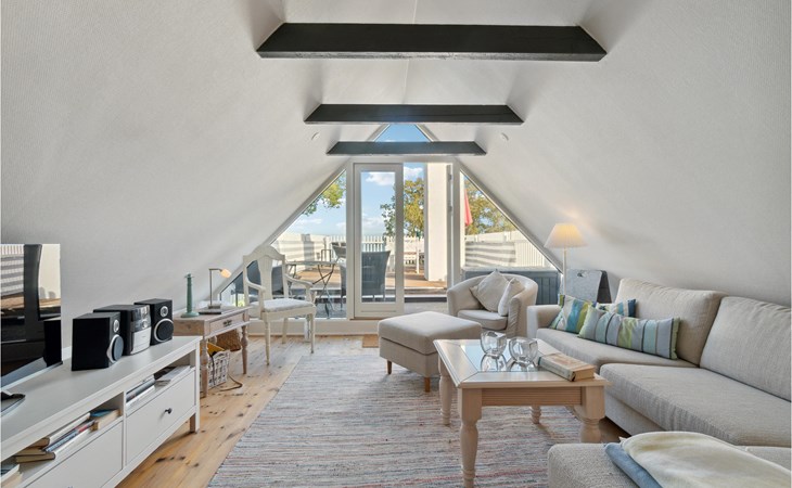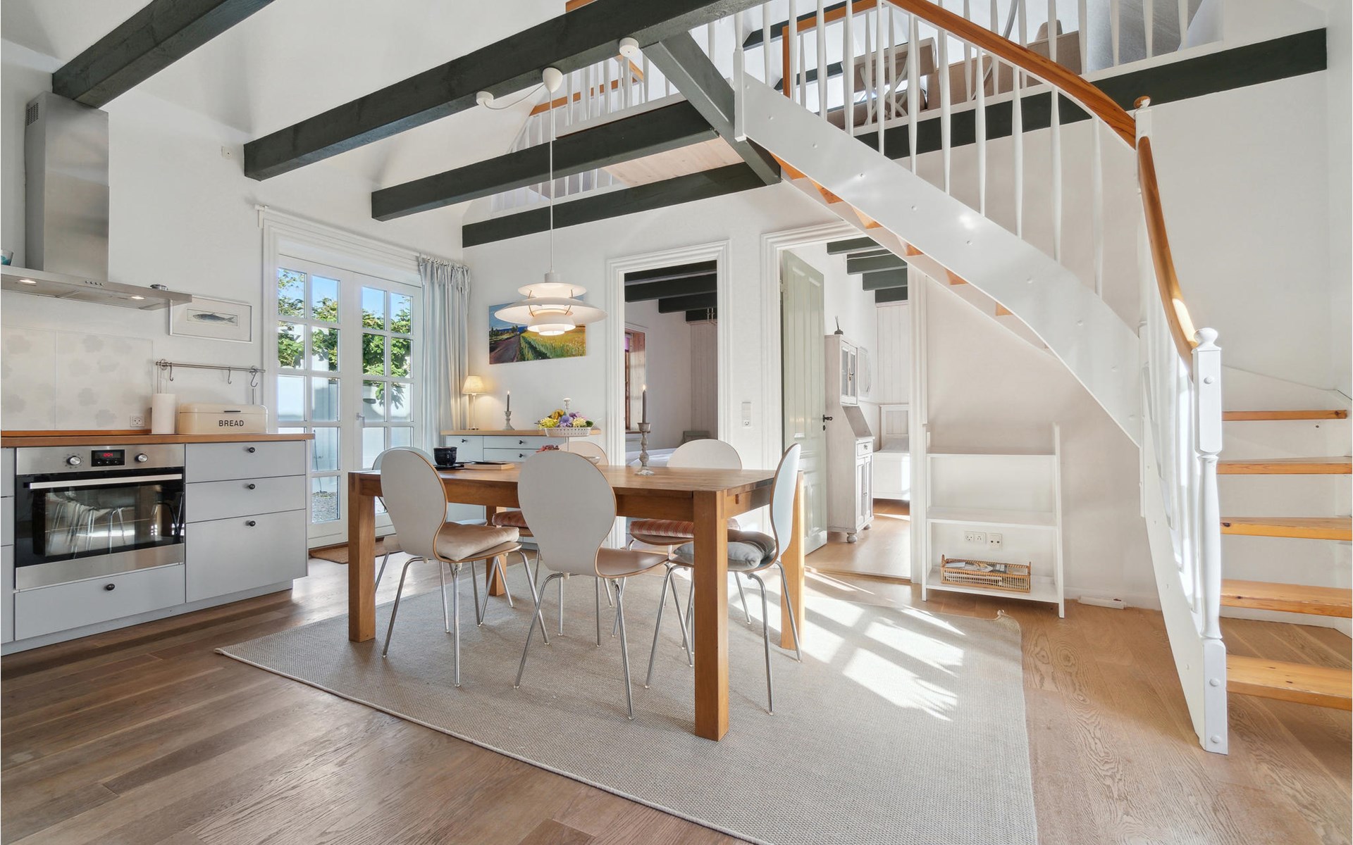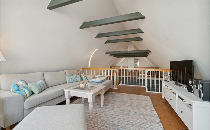 Welcome to the comfortable apartment that awaits you and your loved ones in a fantastic location by the sea. Bright and comfortably furnished rooms on two floors provide the setting for your break from everyday life. Thanks to well-placed windows, you can enjoy the wonderful view from everywhere. Enjoy cozy evenings here when you return from one of your excursions, cook something delicious together and enjoy the cozy warmth of the fireplace. On the upper floor, you can make yourself comfortable on the sofa and spend entertaining movie nights.