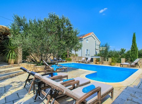 Together with your extended family or a group of friends, you can take advantage of the many extras in this comfortable holiday home and enjoy the proximity to the lively town of Pula. Cook in large groups, chat over long meals, get together for cosy games evenings, compete at the pool table or treat yourself to pleasant moments in the sauna or whirlpool.