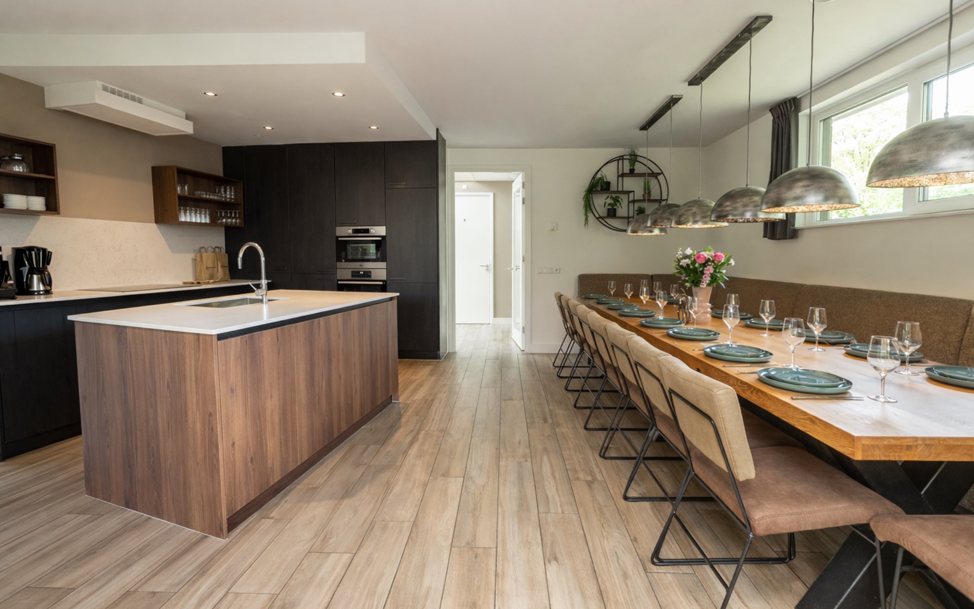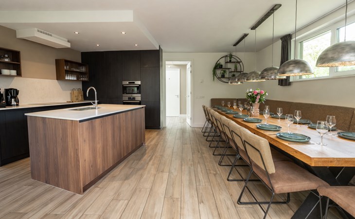 The most energy-neutral holiday home in the Veluwe and the Netherlands. Step directly into the forest and enjoy all the beauty the Veluwe has to offer. The Boshuys with Jacuzzi & Sauna | 20 persons has 8 bedrooms and fantastic facilities, with a wing fully equipped for people with disabilities.
