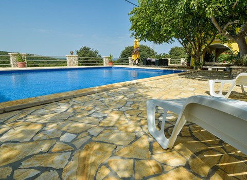 These tastefully furnished apartments all have their own balconies. CDC009 and CDC012 with two bedrooms are located on the second floor. CDC011 is on the first floor with also two bedrooms and apartments CDC010 and CDC013, which are on the second floor and attic, each have three spacious bedrooms and two bathrooms. The sloping roof extends to 100 cm. In front of the house is a common barbecue, which should not be missed in the summer. In about 15 minutes walk you can reach the pebble beach and the historic old town center of Trogir (UNESCO World Heritage) is about 950 m away.