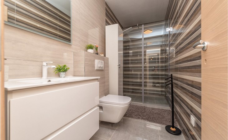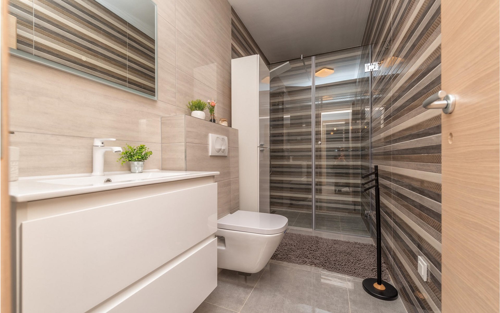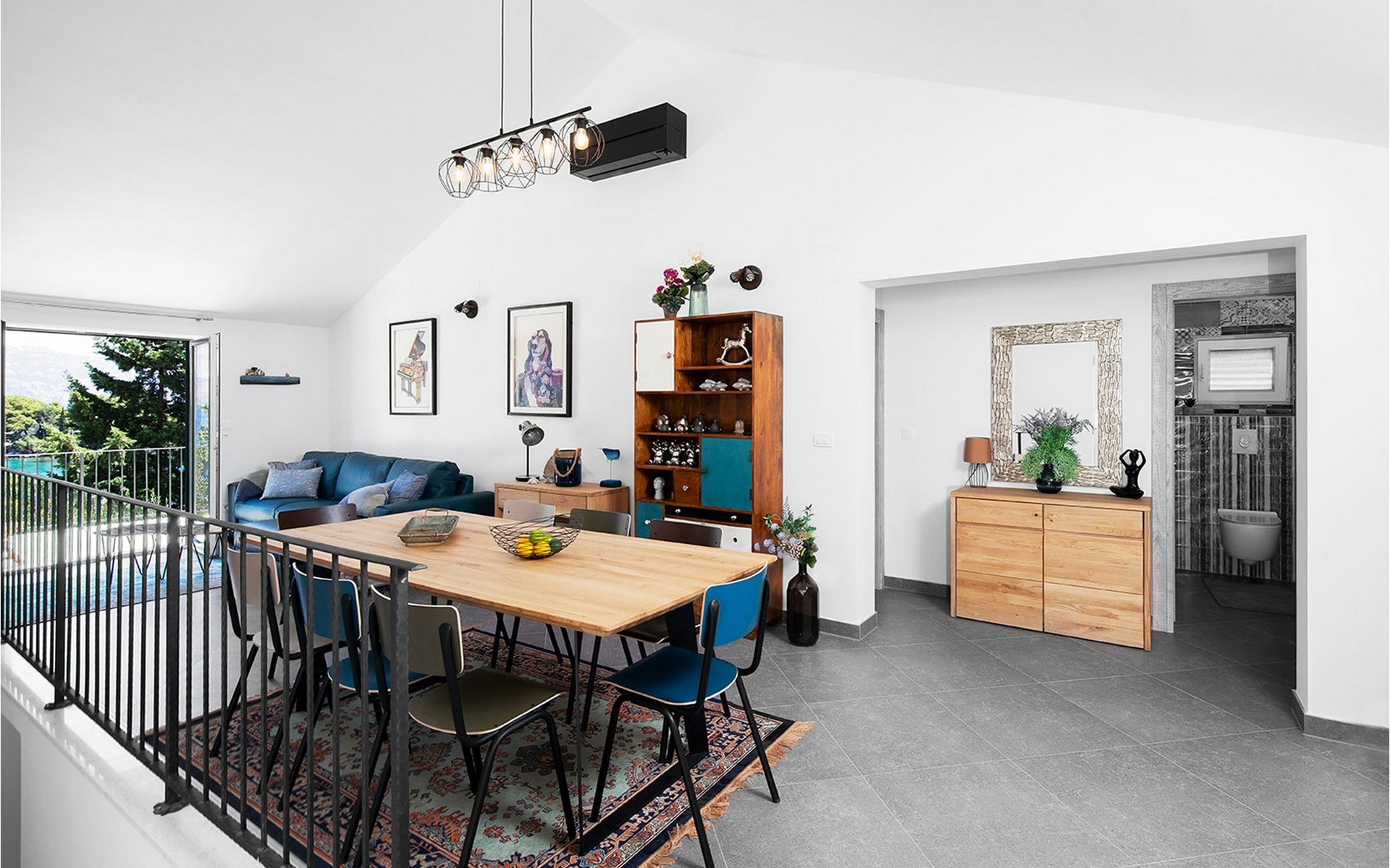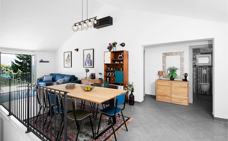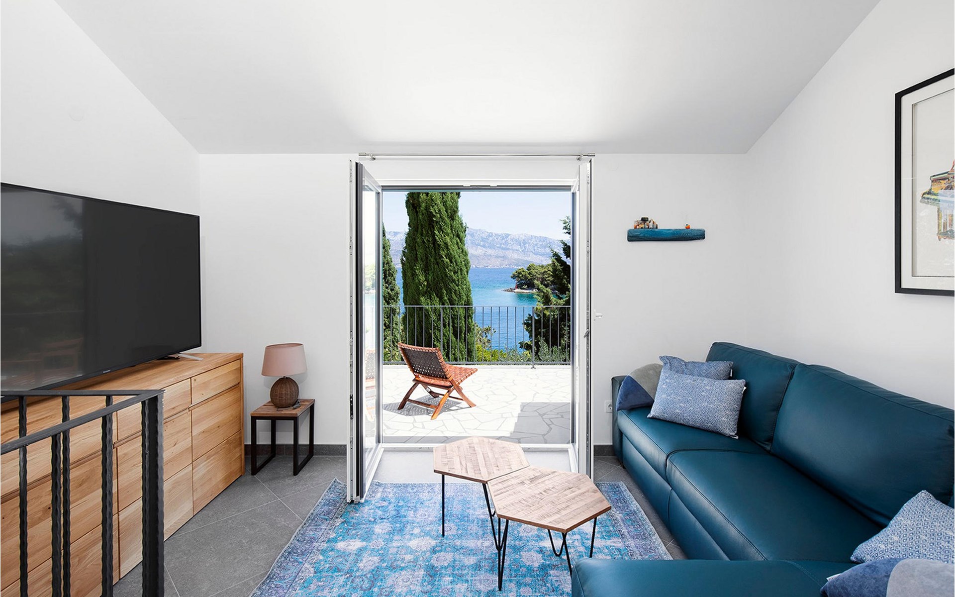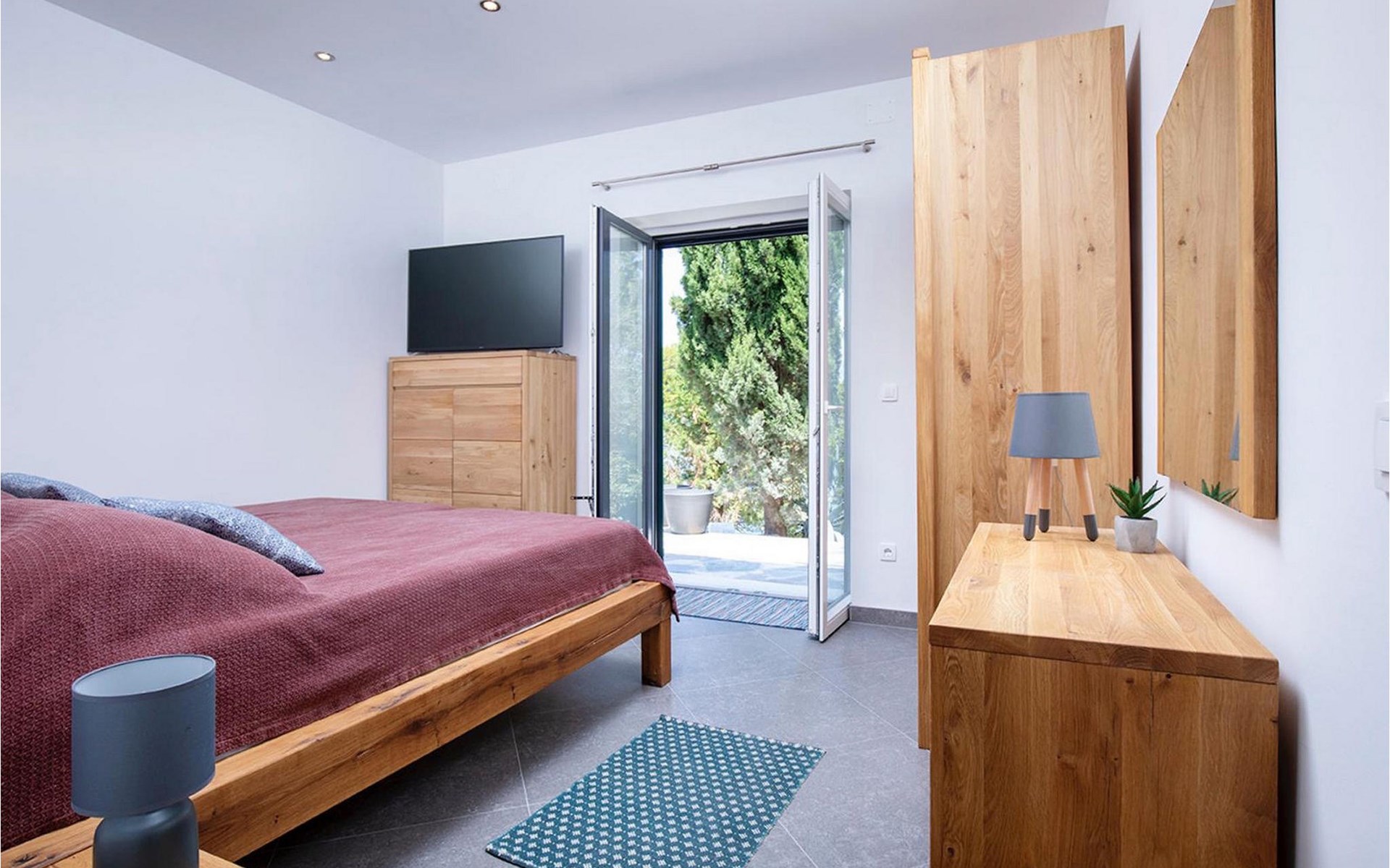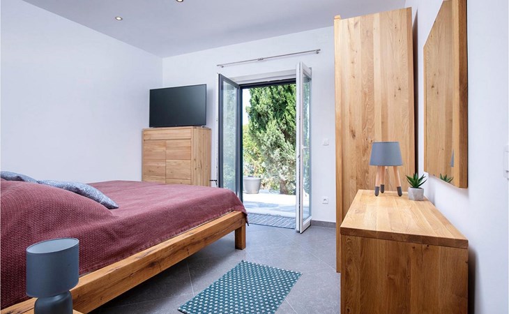 The beautiful Villa Marisol promises you a holiday in a class of its own. A stylish ambience with modern furnishings in warm wood tones, a cosy sofa opposite the TV and a kitchen with bar invites you to switch completely into holiday mode and recharge your batteries. Enjoy the magnificent view of the blue Adriatic, listen to your favourite songs or have a relaxed chat over a good bottle of Croatian wine.