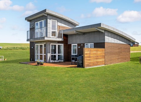 Use the large wooden terrace for al fresco dining or sunbathing. Sit back and relax while your children play in the garden, play football or swing. The spacious lawn offers plenty of room to run around. Enjoy the peaceful surroundings and the expansive view of the greenery all the way to the water.