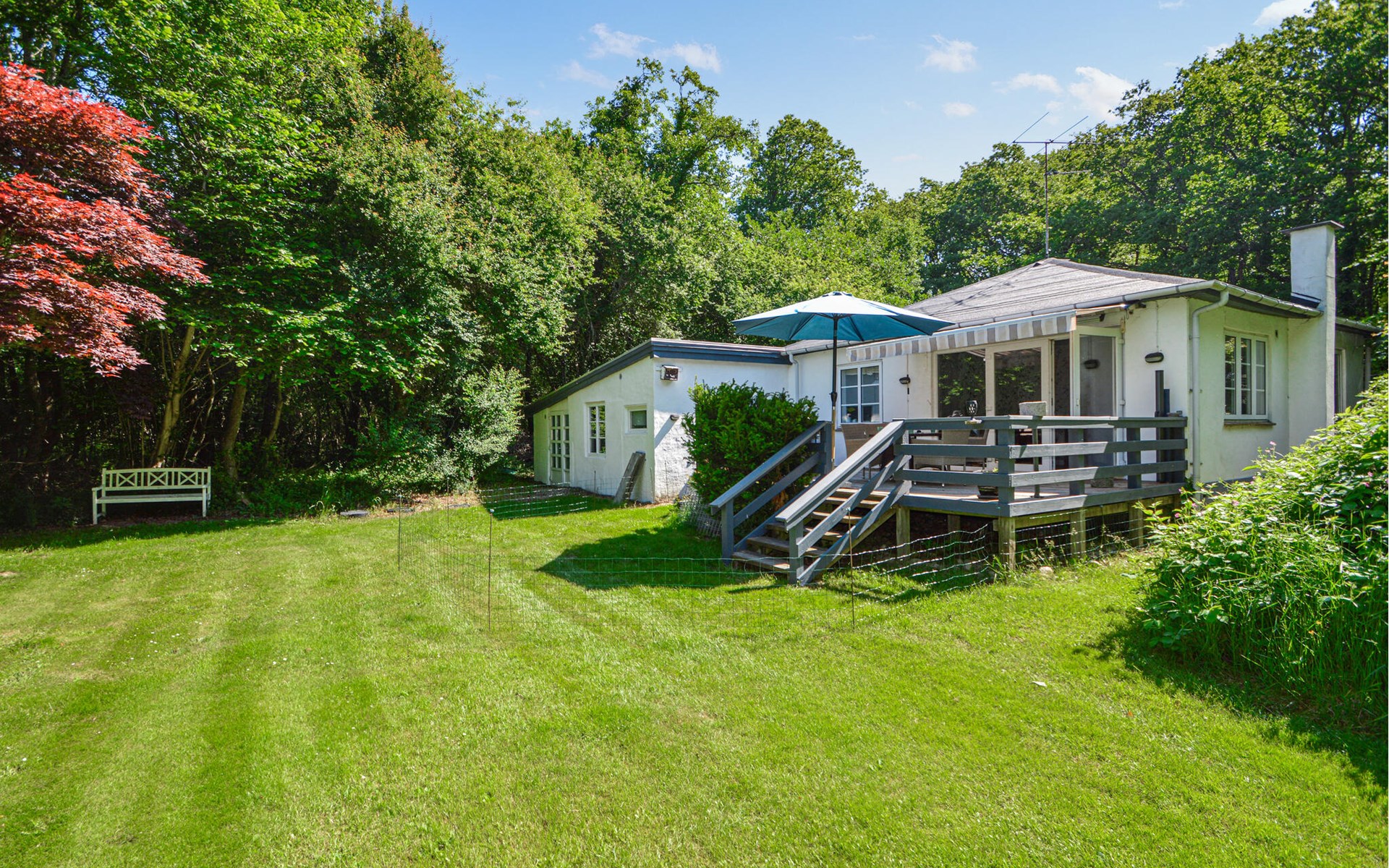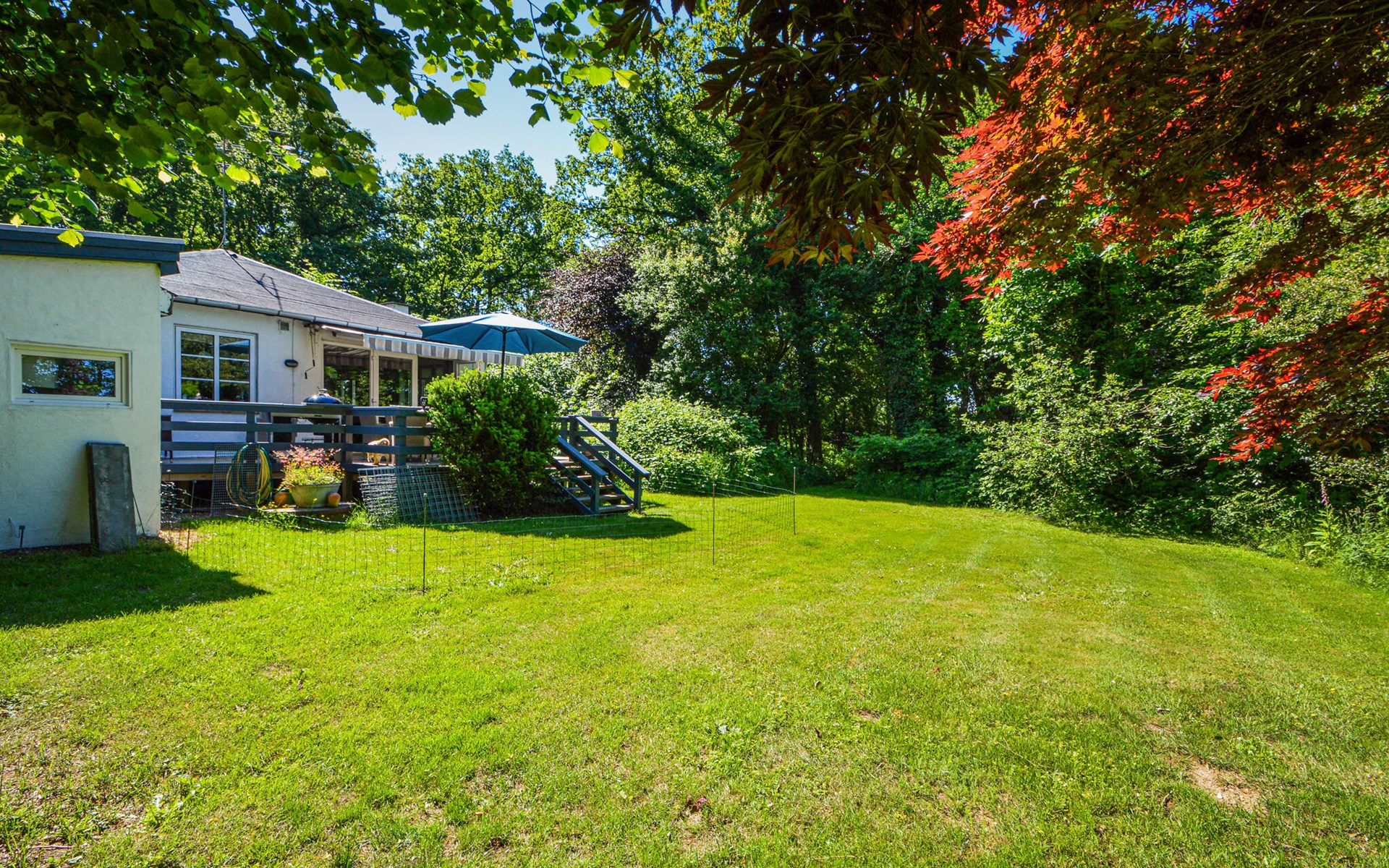 The outdoor area offers plenty of space to play, run around or relax. Go out and enjoy the tranquillity of the garden. Linger on the terrace or simply enjoy the peace and quiet surrounded by nature. Watch as the surrounding trees create a green oasis that guarantees privacy and relaxation.