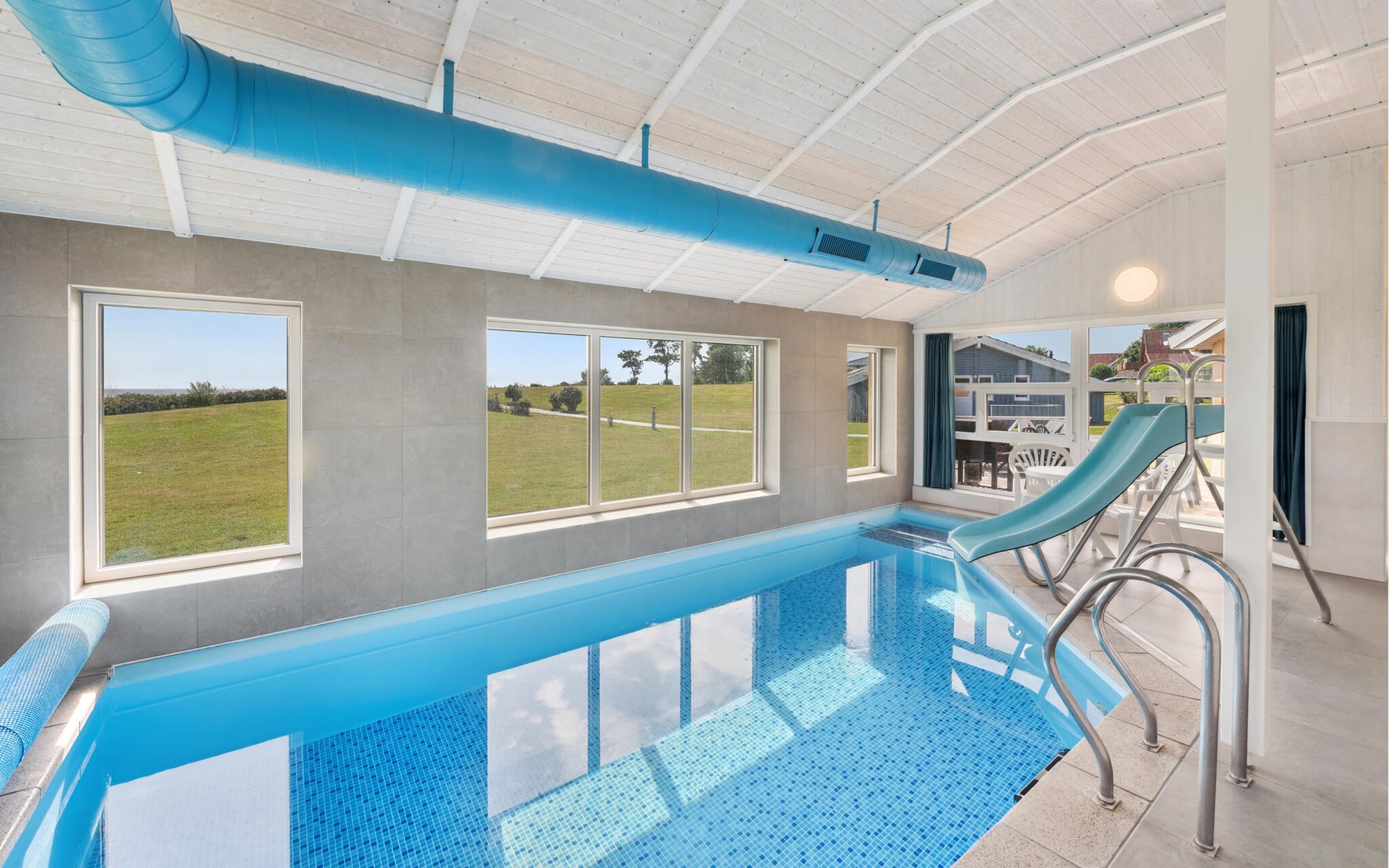 This beautiful holiday home is in an exclusive location, just a few steps from the fine sandy beach, with a panoramic view of the Baltic Sea. Not only because of its unique location, but also because of its special furnishings, it is exceptional and a guarantee for unforgettable holidays. You have your own wellness oasis in the house. In addition to the swimming pool with children's pool and water slide and the large whirlpool, there is also a sauna area (multifunctional sauna). You can try out a different type of sauna or the real steam bath every day. There's swimming fun and relaxation in any weather, with or without sunshine.
