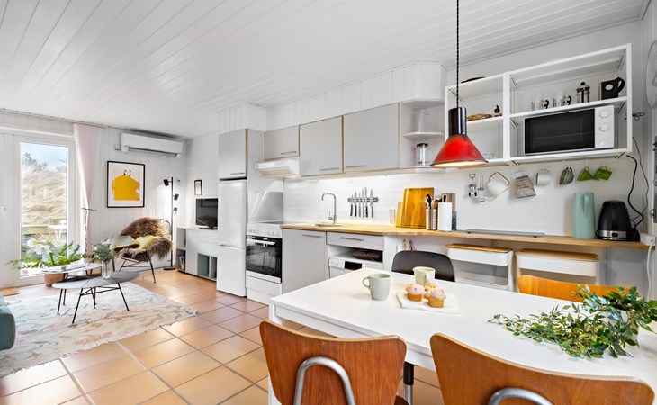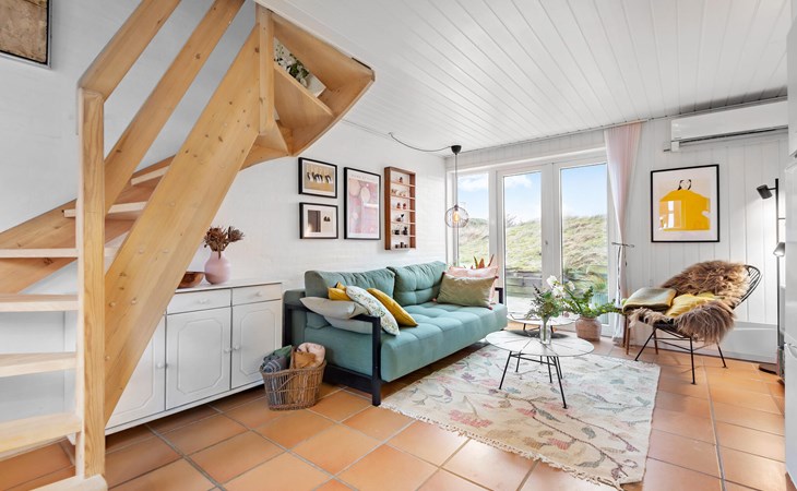 Travel to the island of Fanö and spend a great holiday in this tasteful and lovingly furnished house on two floors. Make yourself comfortable with your family or a couple of friends and enjoy the view of the dune landscape. Here you will find everything you need to feel at home and you can also relax on your private terrace or sit at the picnic table in front of the house and watch your children play in the sandpit while you chat with the neighbours.