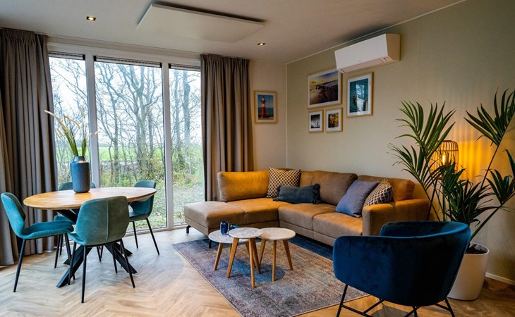 In Pavilion 4+4, you can enjoy peace and space. The chalets are single-storey and each suitable for four people. The interior has a cosy and warm atmosphere.