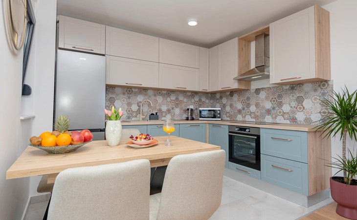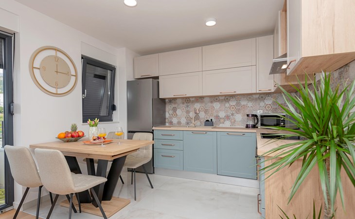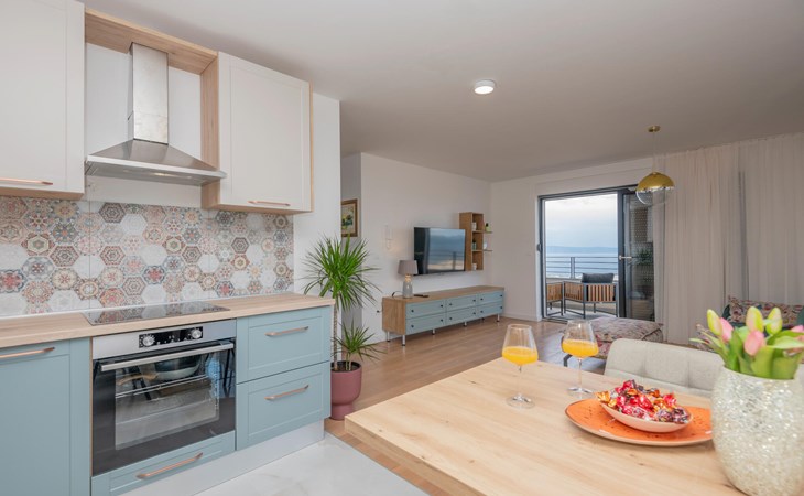 Your stylishly designed holiday apartment offers you the ideal opportunity to escape from everyday life and recharge your batteries. From the first rays of sunshine in the morning to the mild evening hours, you can experience pure relaxation here. Wake up in your comfortable bedroom and enjoy the peace and quiet and the elegant ambience. Start your day with a delicious breakfast, which you can prepare in the practically equipped kitchen. Enjoy your meal at the adjoining dining table or take a seat on the sunny balcony, where you can let your gaze wander over the sparkling sea. Afterwards, the comfortable sofa invites you to take a break. Immerse yourself in a good book or watch a good film.