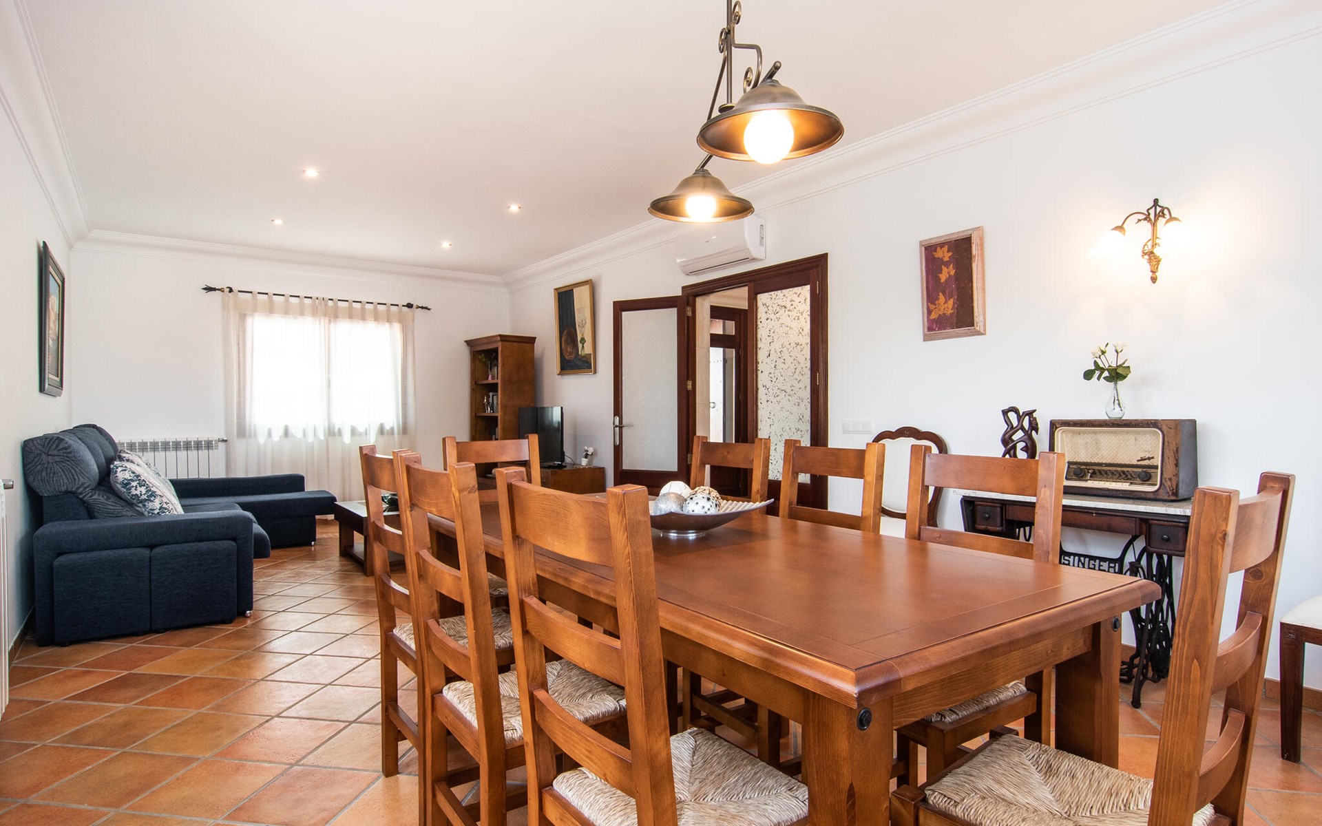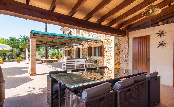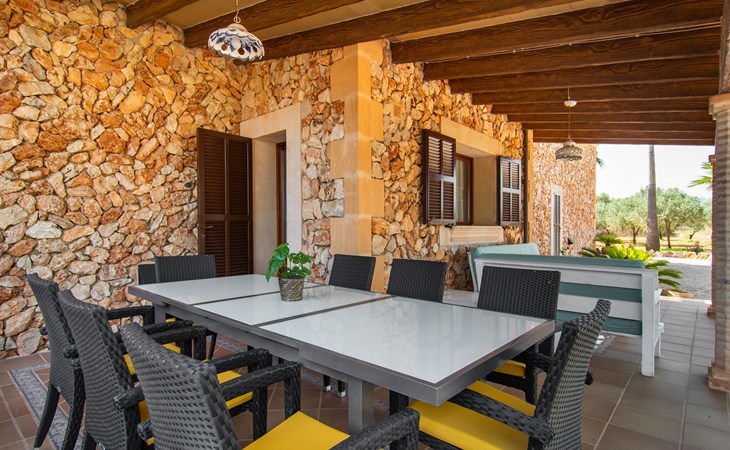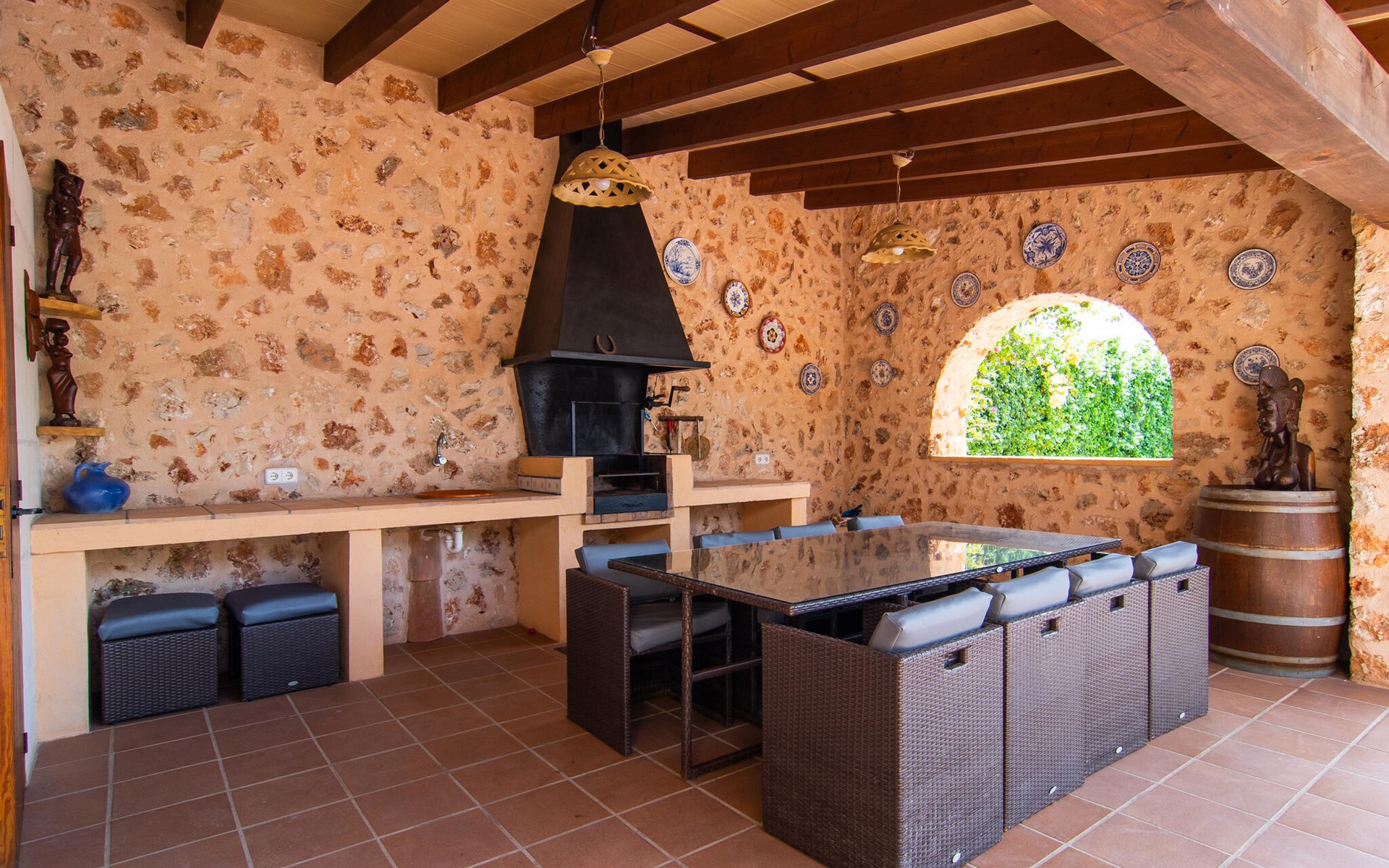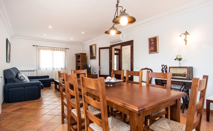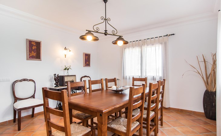 In this enchanting Mallorcan finca, not far from beautiful sandy beaches, you can enjoy both rustic charm and modern amenities that will make your time away with friends or family a relaxing and comfortable experience. The spacious, traditionally furnished interior offers plenty of space for cooking, dining and relaxing in large groups. Look forward to convivial meals at the long dining table and relax with a film on the cosy sofa after a long day.