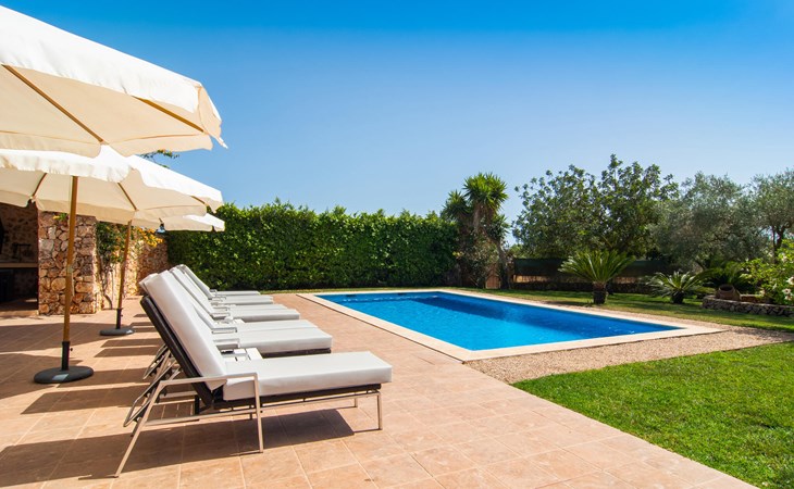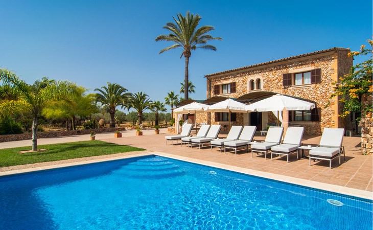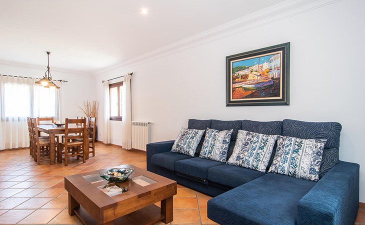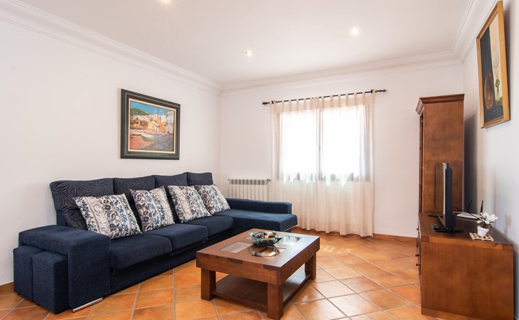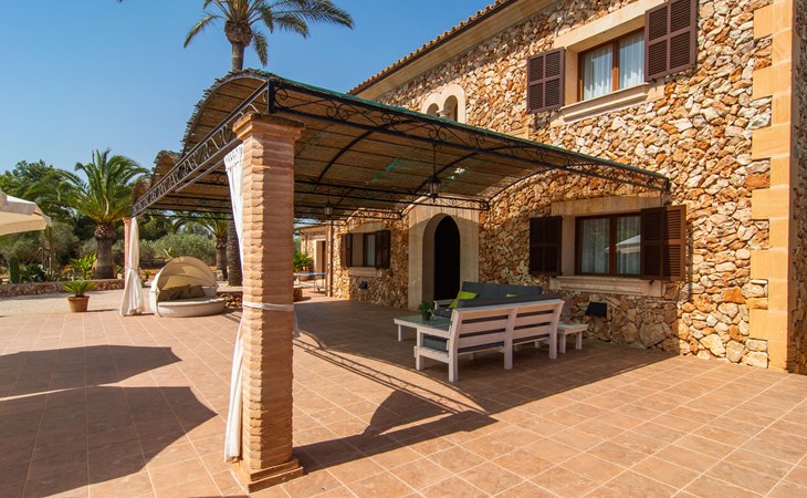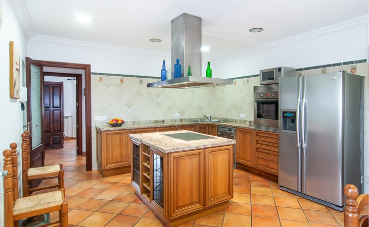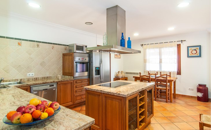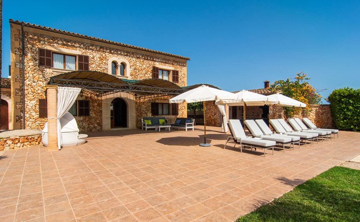 In this enchanting Mallorcan finca, not far from beautiful sandy beaches, you can enjoy both rustic charm and modern amenities that will make your time away with friends or family a relaxing and comfortable experience. The spacious, traditionally furnished interior offers plenty of space for cooking, dining and relaxing in large groups. Look forward to convivial meals at the long dining table and relax with a film on the cosy sofa after a long day.