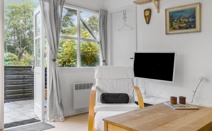 Small but cosy wooden cottage in a quiet location on a garden plot with access to a communal playground.