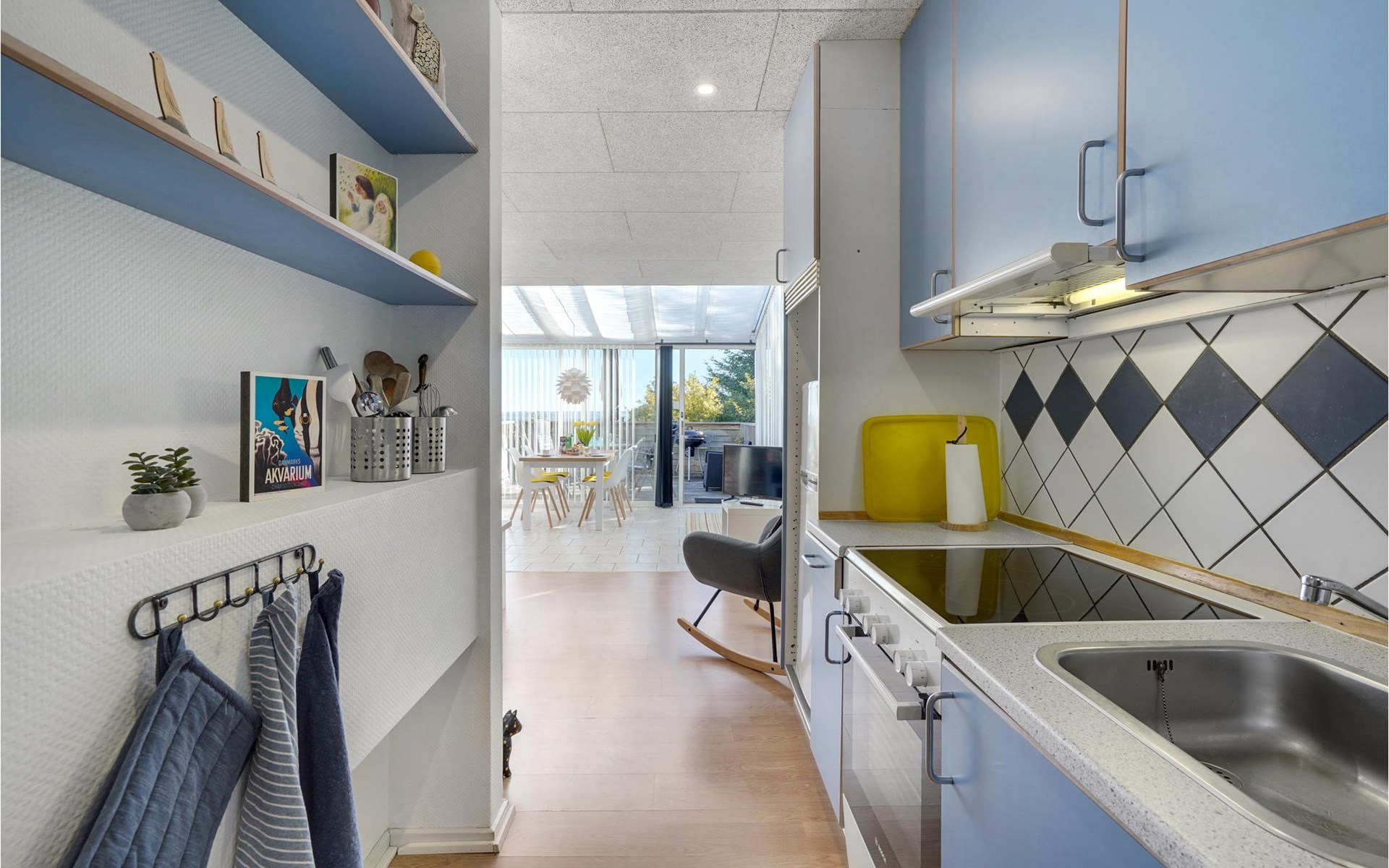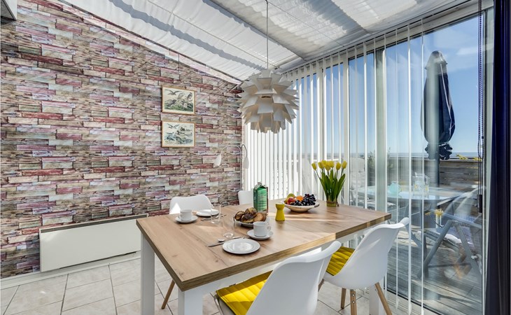 The holiday apartment awaits you with a fantastic view of the sea through the large panoramic windows. There is plenty of space here for you and your little family. The apartment is suitable for a holiday at any time of year and is extremely inviting with its decorative and modern furnishings.