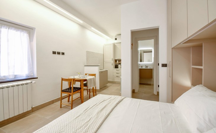 A perfect holiday home awaits you in this modern studio flat in Camogli. The stylishly designed interior offers comfort and a bright atmosphere with modern furniture and thoughtful details. The kitchen is particularly convenient and allows you to conjure up delicious dishes together.