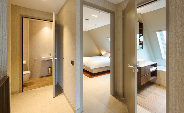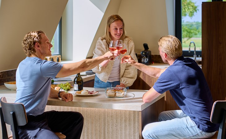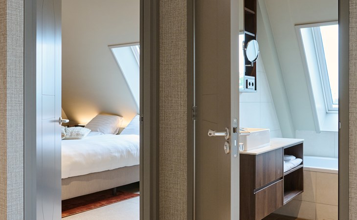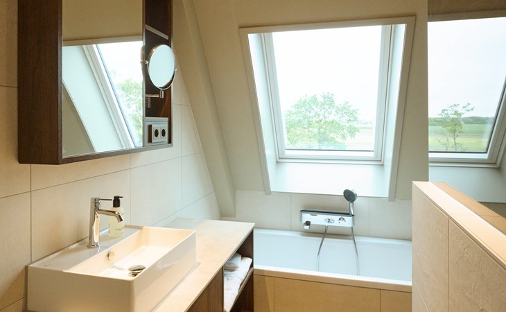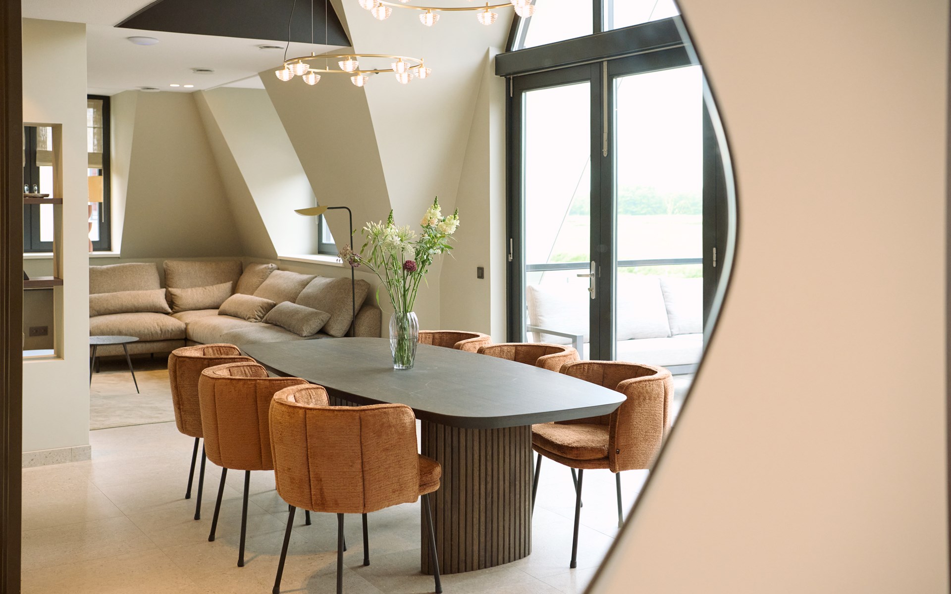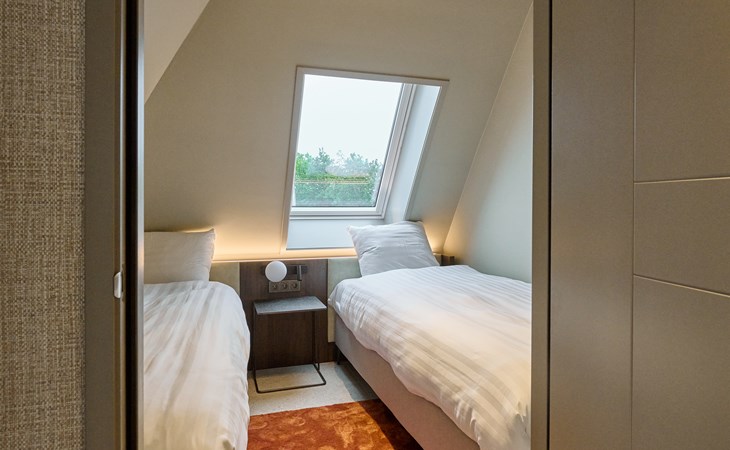 Located on the first floor with access to the second floor of each building, these fully finished apartments for 6 people provide a comfortable and luxurious base for your vacation. With an area of 120m², they offer plenty of space. Each apartment features three bedrooms with 2 comfortable twin beds, 2 single beds, and a cozy layout that gives you the feeling of a true 'home away from home.' Enjoy modern amenities such as a fully equipped Siemens kitchen, a Quooker, and a practical washer-dryer combination. Relax on the terrace with lounge sofas and admire the beautiful landscape of Texel, a breathtaking view that you won't find anywhere else. Whether you want to unwind in the first luxury ensuite bathroom with a walk-in shower and bath or in the second bathroom with a walk-in shower (2 separate toilets), or quickly prepare a meal in the modern kitchen, everything is available for a carefree vacation.